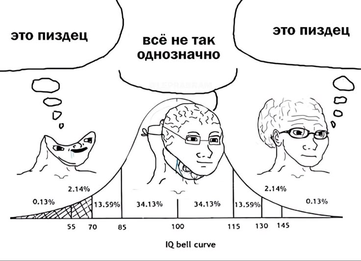 >В мире есть миллиарды людей низкого роста. Но отдельный тред инцелов про рост, на редите и срачах, создают только отдельные индивиды шизики Бля, ну многие нормисы реально верят, что у них проблема в навыках общения а не в ебле уродском, дальше то что? Будем мерить по большинству? Литералли "а нахуй вы жалуетесь на маленькие зарплаты, вон в африке то дети вообще без еды сидят".