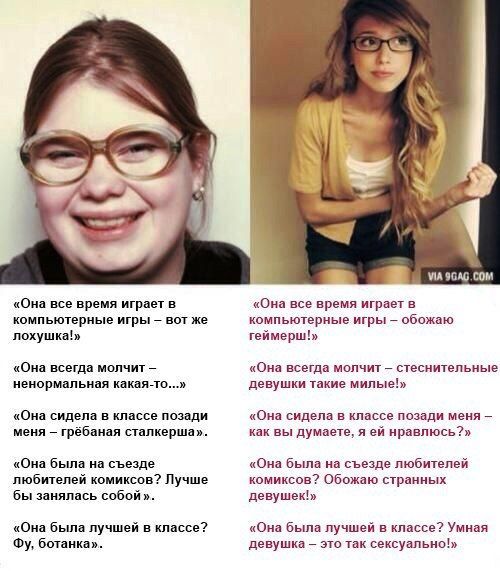Алсо, моё восприятие тян с первой пикчи: левая искренне увлекается чем-то и поэтому интересна, а правая тупая позёрка, которая строит фальшивый образ вокруг себя ("Ишь как накрасились!"), собсна как и левый мужик со второй пикчи. Без вариантов.