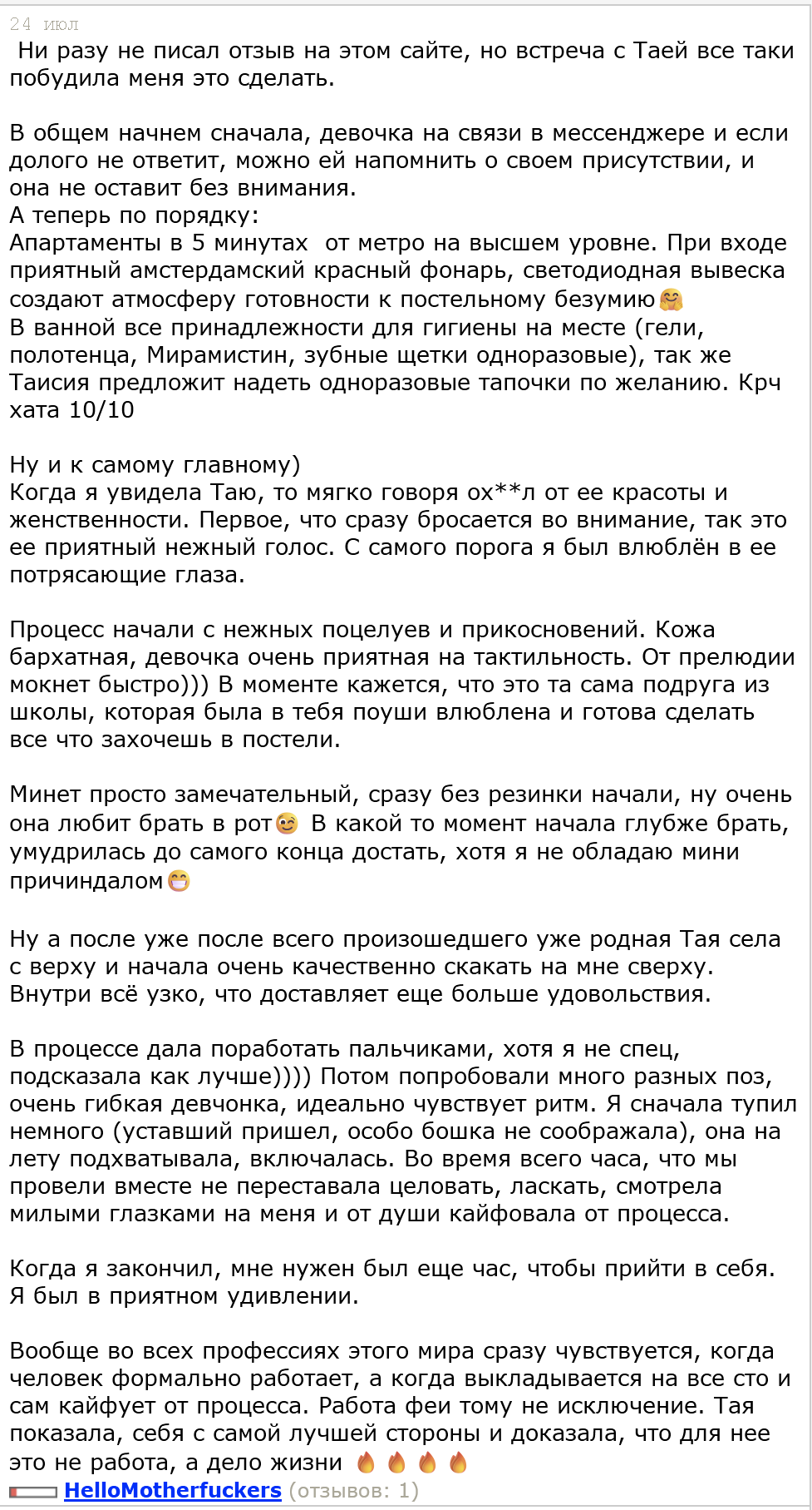 Впервые за долгое время понравилась девушка очень, правда сука дорогая. Зато отработала с первой минуты до последней. Не торопит, видно что хочет доставить удовольствие, а не просто филонит, охотно целуется. В сфере недавно, и чую что скоро свалит, с нашими то быдланами, плюс нет ограничения по национальности, то есть всякие мастурбеки эту милаху тоже ебут. Вопрос, как грамотно выманить ее личные контакты? Чтобы не потерять в скором времени. Хочу начать звать во всякие заведения, но при этом не платить почасовому прайсу. И кто нибудь пытался встречаться с феей в обход службы? Может так получится без особой спешки,к примеру вместо часа, полтора. Ну а че, проценты же службе не будет отваливать