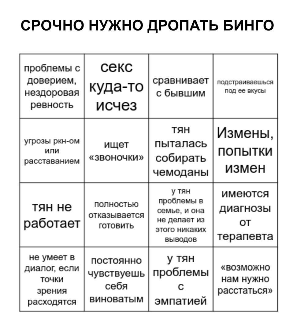 У самого была тян соулмейт няша 10/10 с которой были общие музыкальные и киновкусы - дампнула со словами "скушный злой пративный слабый нииинтирестный" и спустя два года еблась с каким то силовиком, хотя под конец отношений не хотела со мной ебаться якобы из за того что мне пихуй на насрального, а она ведь такая вся из себя кокозицыонерка была. Вот нуфф саид читайте перечитывайте руководствуйтесь попытом мани вы ебучиек