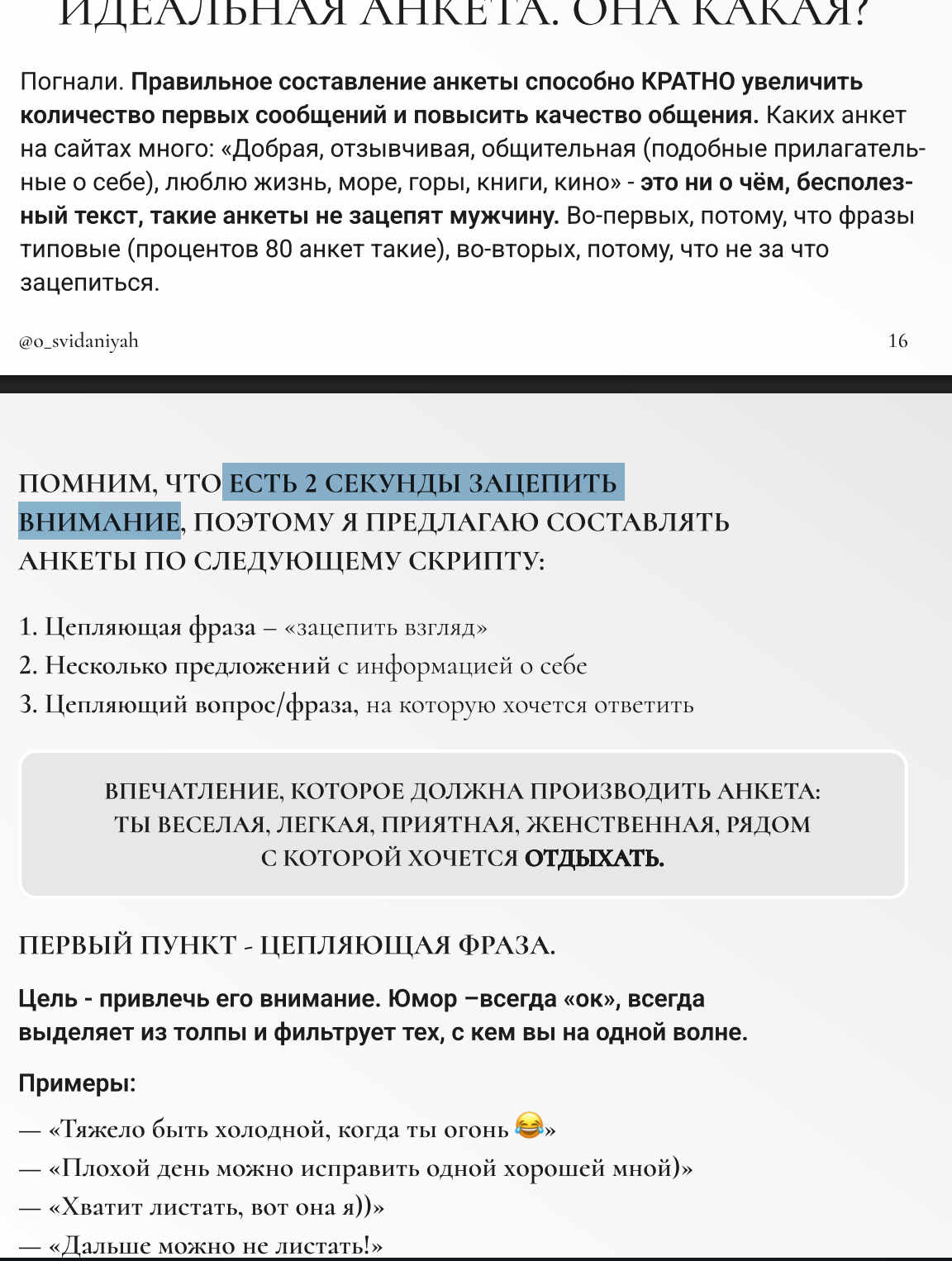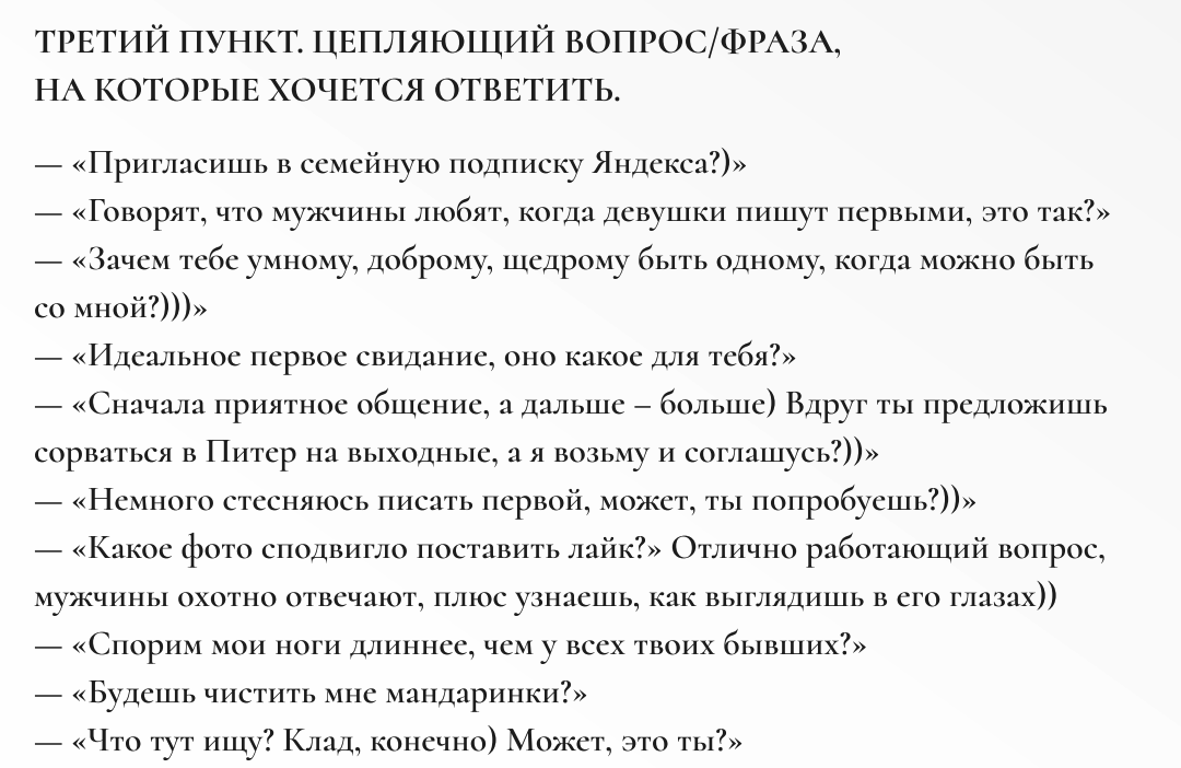 Но гайд хуевый и бездарный, это очевидно. Единственный годный совет для тянок это действительно проявить инициативу написать первой не привет и выделиться среди других мэтчей.