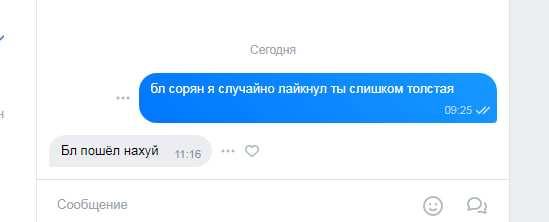 Списался на сз с одной дурой. Она пишет мол ищет отношения. Я пишу мол не ищу отношения, ищу общение а дальше как пойдет. Она пишет: мне это не подходит. Я: ты сидишь здесь уже 15 месяцев, как можно не найти отношения за такой срок? Она: да я тогда была в отношениях просто на сз продолжала сидеть.