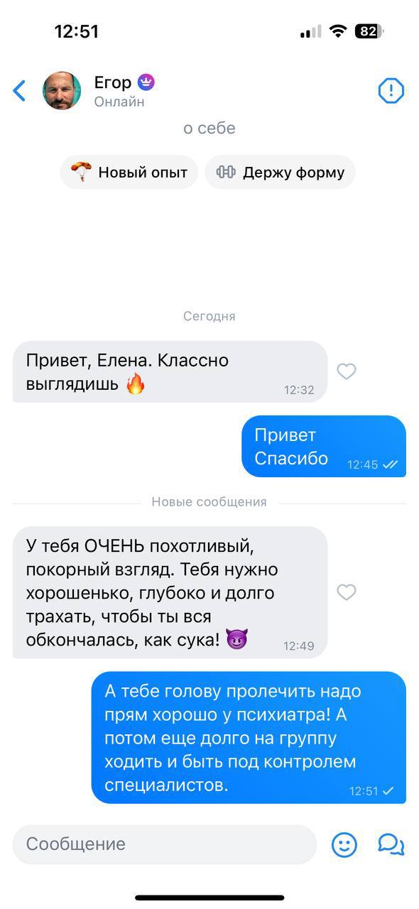 >>10270207 Пусть захлопни свою, красавчик. У тебя отсутствует рефлексия, ты оцениваешь других только на основе своего личного опыта и понять другой опыт ее в состоянии. Нет вообще никакого "стиля общения", имеет значение только то, нравишься ли ты тёлке или не нравишься. Если с ней общается красивый мужик, то телка до последнего будет пытаться сглаживать углы или сводить его токичность в шутку, надеясь, что он скажет "ахаха, да я пошутил так, идём гулять))". Главное, что телка будет продолжать отвечать ему, а чмоню кинет в блок мгновенно. Блядь, сколько же среди вас необразованных обывателей, которые не понимают элементарных вещей между мужчинами и женщинами. >>10270182 Когда я многие годы назад рассылал в баду всем приколюхи и безопидные пасты про Макдак, то шкуры прежде чем ответить, заходили в мой профиль. Я это хорошо помню. Там они убеждались, что с ними беседует чмоня и сразу блокировали. Мне из-за этого от буду даже предупреждение прилетело. Естественно, если бы на фотке был не я, то они бабы начали общаться по другому.