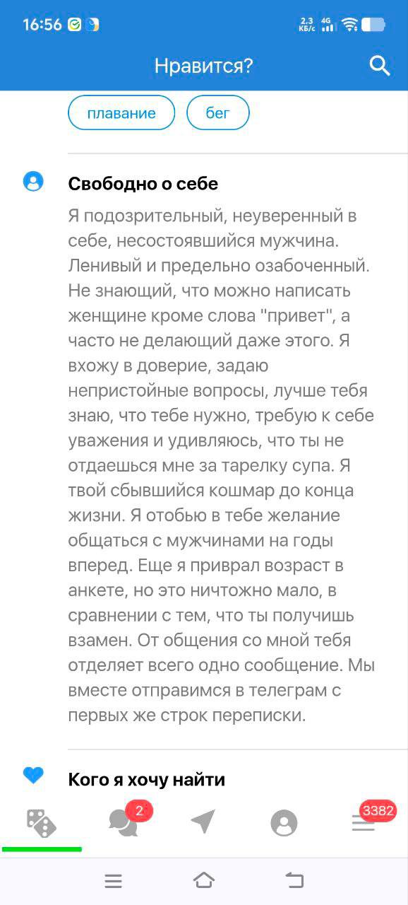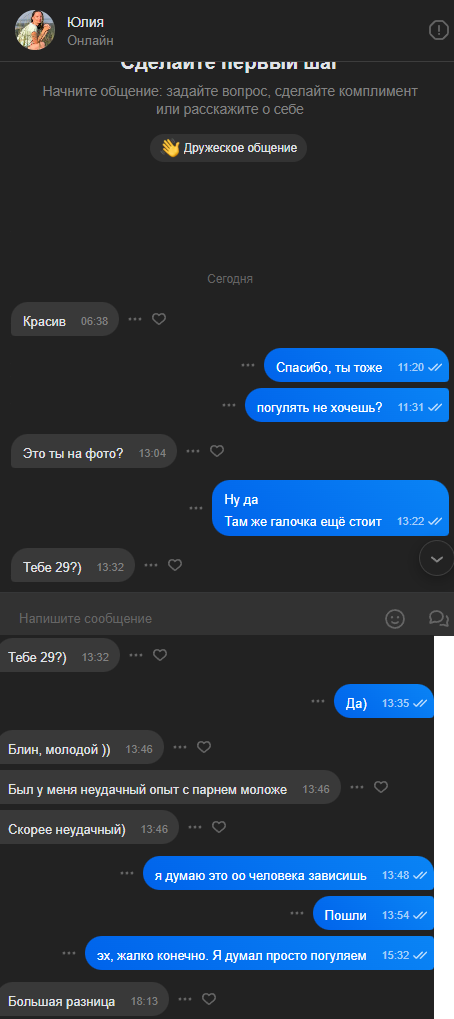 пс. куча лайков накопилось, даже лень отвечать, один хуй в реале я не соответствую себе 15 летней давности, а если текущие фото ставить то вообще хуй лаqков получу (вк знакомства это показывают)