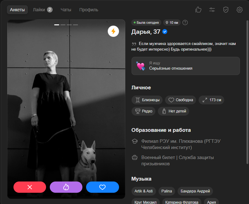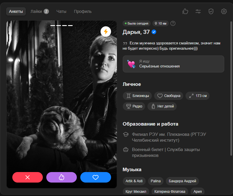 Еще и в вк знакомствах сука лайкают только твари уродливые, жирухи ебучие (там у меня возраст повыше, чем в дв стоит - 28лвл, но тоже занижен). Меня сука, человека окончившего топ вуз, зп 250к, машина квартира в дс, я в ахуе сука, чо происходит сука!??!?!?