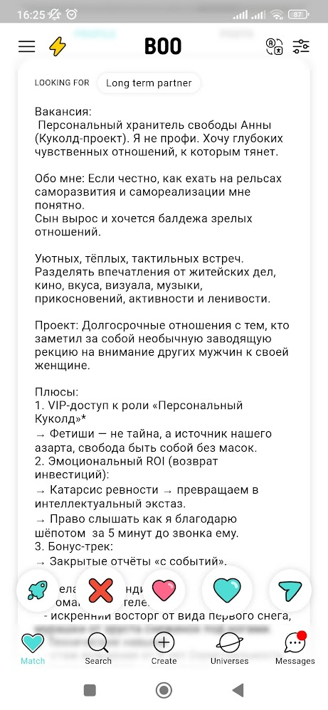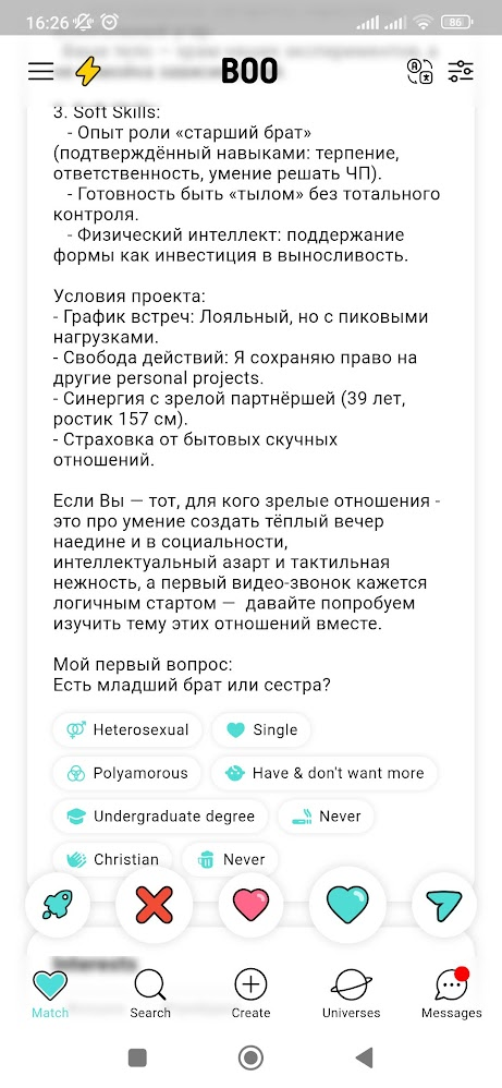 Тут двум собеседникам абсолютно похуй друг на друга. Но вообще он красавчик в том, что выдал сразу самый пиздецовый факт о себе, после которого любой нормальный человек независимо от пола прекратил бы с ним общение — он кубаноид