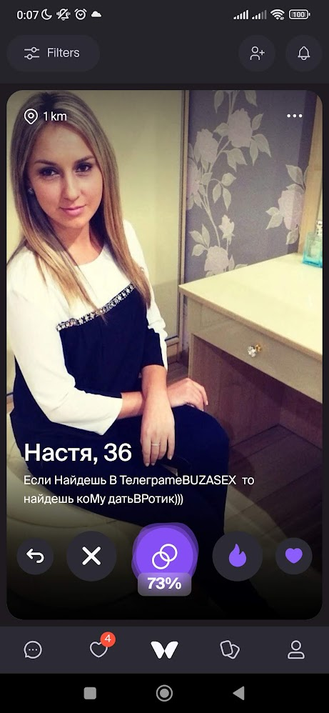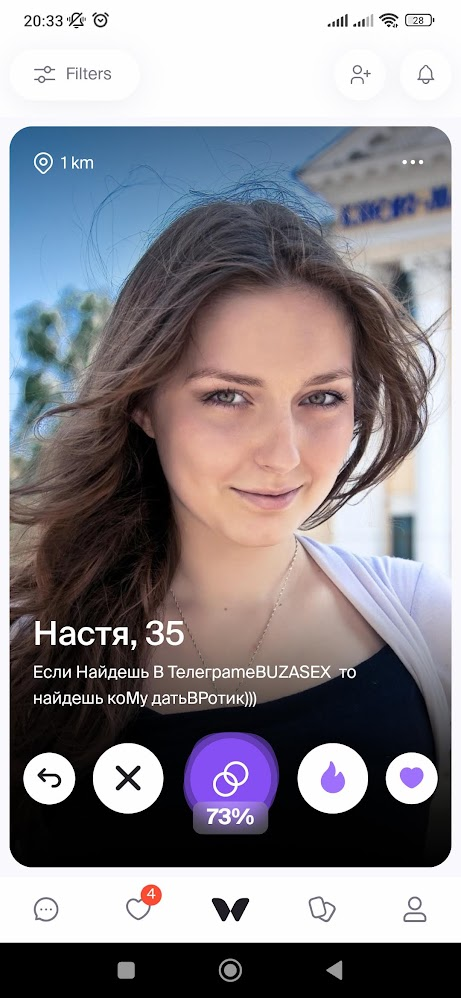 >>10269577 (OP) Бля, сменил три страны, РФ РБ и теперь Сербия - просто НИ ХУ Я. До 2023 года еще были варианты и их было достаточно, из 100 анкет 10 метчей и 1-3 свиданки в месяц вполне, а сейчас просто один лайк в месяц и то от бота. Пробовал даже пьюр - сплошные "ищу апщения" или просто блять без фото и описания. И ведь сука даже таких лайкают. Как вы вообще сейчас кого то находите?