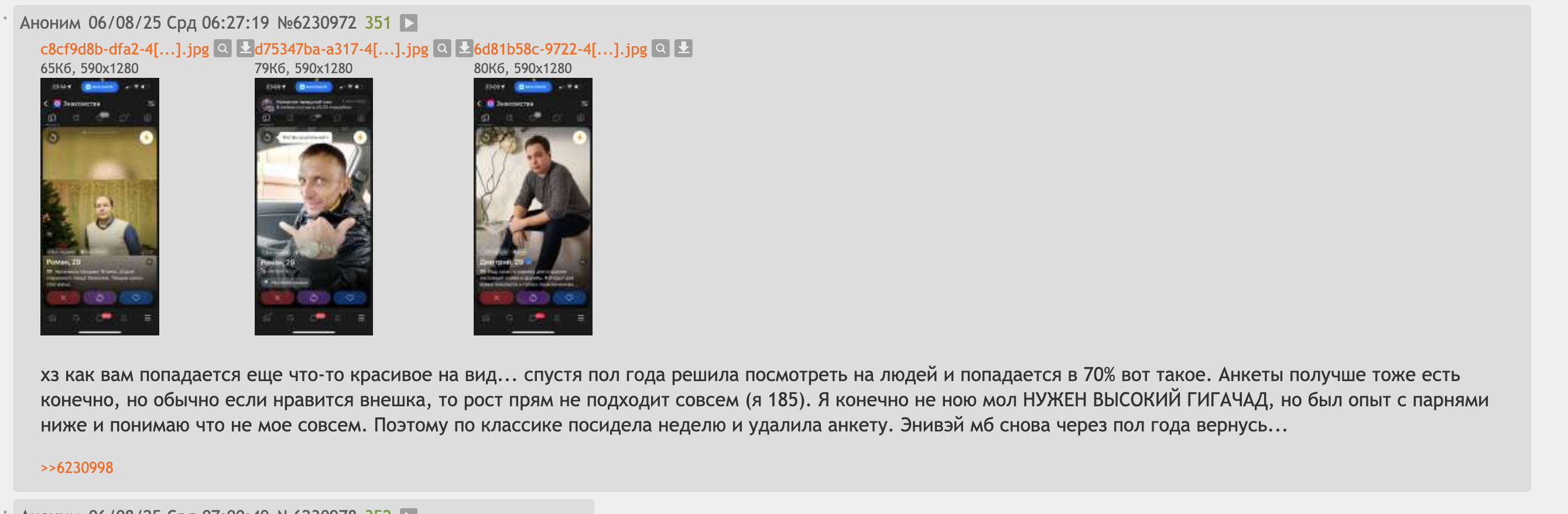 Сегодня встретил десяток, своих бывших матчей, из 2017 года. Все те же фото, все то же описание, только возраст уже 30+ и рспешками стали. Профессиональные сидельцы на сз получаются