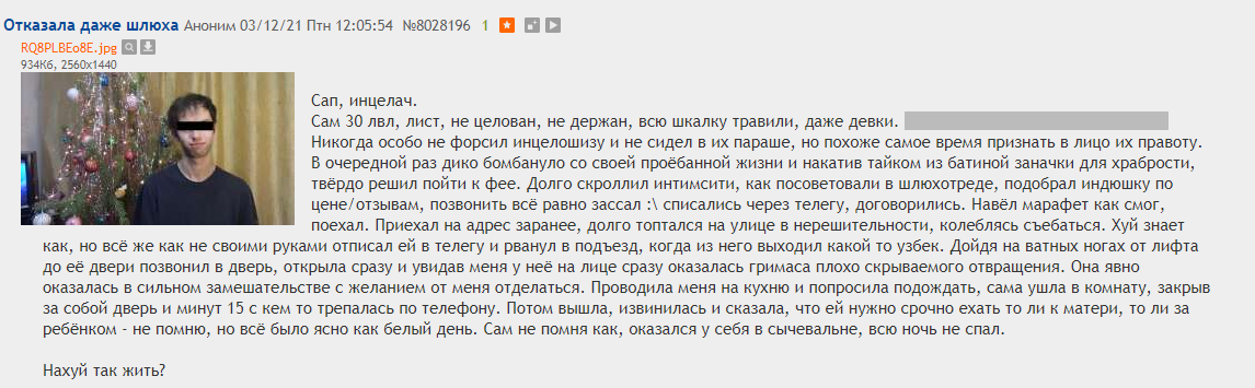 Я помню тут высирался инцел под 2м ростом, дескать "face is a king", при этом постоянно кидая фотографии, рассказывая то как на него все пялятся куда бы он ни шёл, чтобы он не делал. Вот это жизнь чеда - когда ты буквально тупо существуешь и тебя хотят.