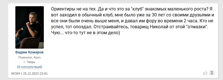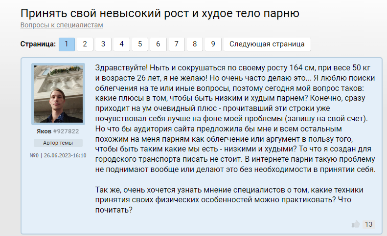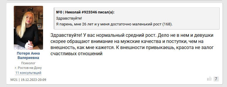 >>10284824 Помню какая то психологиня коммент оставила под опросом "что будет если вы проснётесь завтра 175 см обычным парнем" что то из разряда "Блииин уже проиграла ведь, с таким ростом только в петлю." Причём это не тролль аккаунт, а реально акк какой то пизды психологини из Мск.