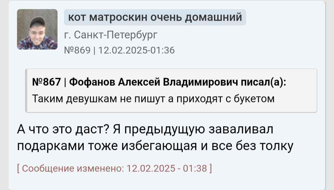 >>10285587 Он неосознанный. У любого процесса есть глубина: можно просто купить карандаши и неосознано рисовать лица людей - получится плоско, грубо и некачественно. А если осознано подходить к рисованию: понять что нет контуров - есть тени, а значит еще и свет. Художники еще более осознаны в своем деле. Так же и со свиданиями. Он пишет что просто пили чай, обнимались. Он что хотел от свидания? Какой был его мотив? Что он сделал для этого, а что нет? Как готовился к свиданию? У него нет такого уровня осознаности, как у нас инцелов, что внешность важна. Или как у пикаперов, что важна атмосфера, обстановка. Также у нас у всех есть психологические защиты, которые защищают нашу психику. У него явные отрицание и рационализация. Отрицание не дает ему осознать что он тупо ей не интересен больше - не зашел (внешне, финансово, поведением и тд). И то что он пытается понять что не так - рационализирует (ударяется в психологию, фокус смещает с себя на девушек, это как коуч джордж учит, мол у тебя не получилось? Да это она театральная просто - с такими не реально вообще, ищи пограничницу - у меня на бусти есть видео про них). Ему говорят - ты не зашел >вы ошибаетесь - опять отрицание. Он двигается по установкам "будешь ухаживать - тебя будут любить" - эта схема может у него и работала, но сейчас в силу скуфения перестала - хз, я его не знаю. По итогу: неосознанность, отрицание и рационализация психологией + некрасив и без денег (иначе бы получалось с девушками и установка "ухаживаешь - тебя любят" работала бы и он не сидел бы с психологами. 6'2 инцел на хардмаксе