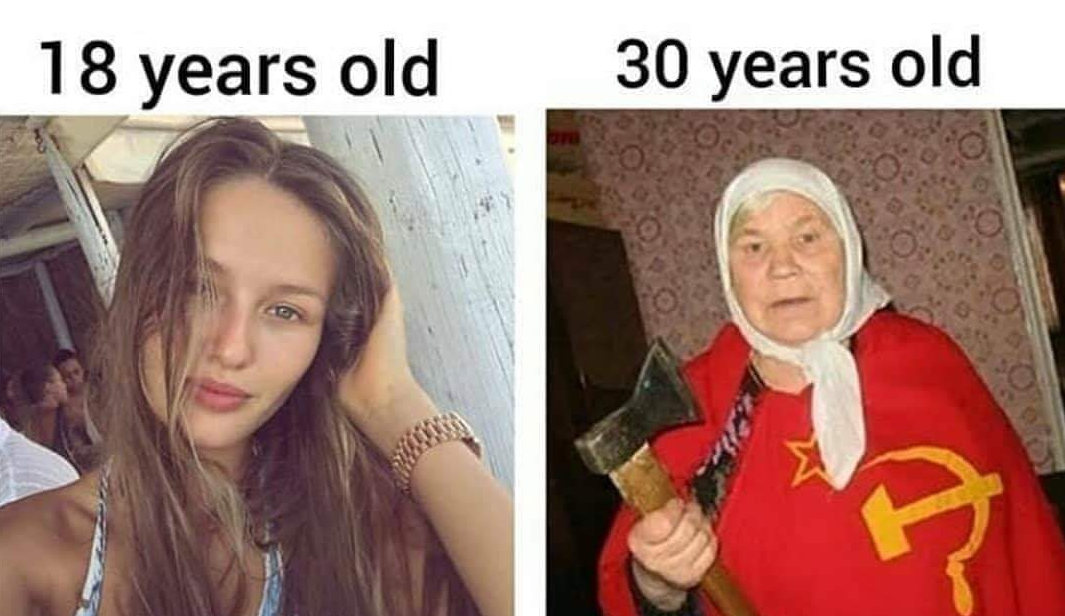 >>10278541 Блять да даже если не брать людей как вид и 40к лет, то цивилизационно после рывка и создания первых цивилизаций - 5тысяч лет. И всё это время, всегда, бабам говорили и говорят - 30лвл это БАБКА. Но тут ебанула секс революция, они в себя поверили, им наговорили какие они охуенные и вот куча 30ти летних никому не нужных дур. Даже инцелы когда станут постарше и хоть бабла заработают найдут свою крокодилиху, но вот 30+ тням просто пизда. Их судьба - идти на проеб онли. Thats life
