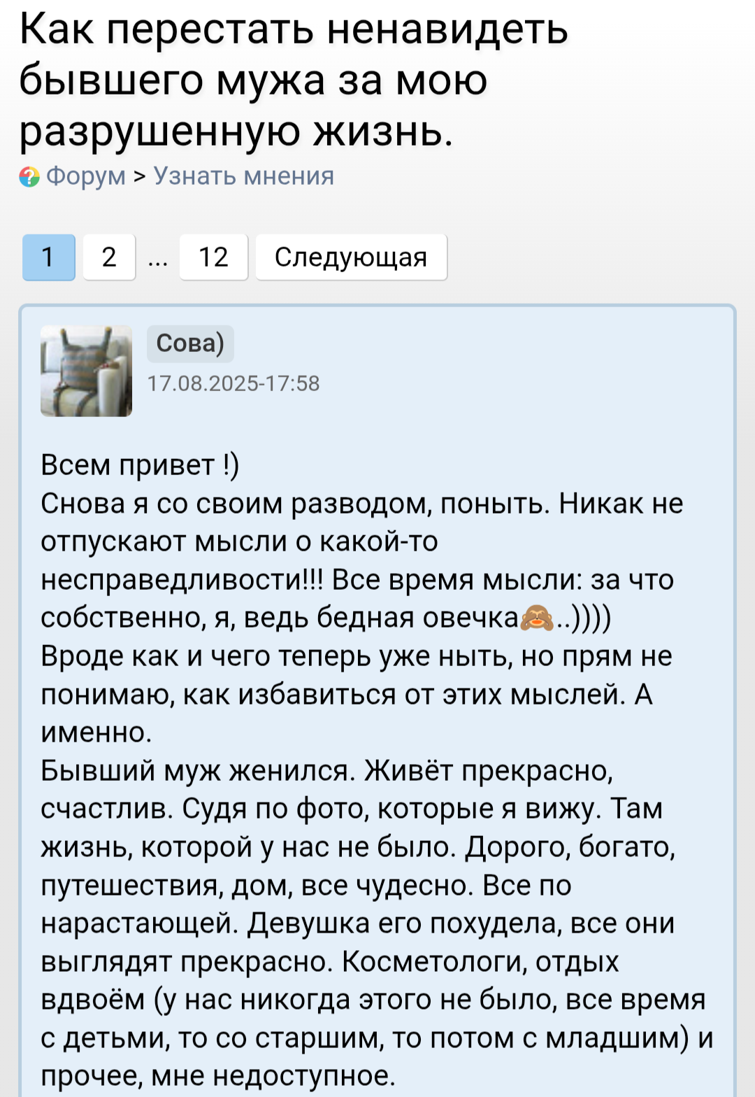 Великолепный ОП показывающий всю сущность «женских советов» в отношениях. Мизантропия в чистом виде.