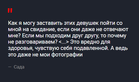 >>10299109 >Первое сообщение слишком длинное - просто "Привет" Лол, ты мудень с вредными советами. Любая тян подтвердит, что на одни приветы, тем более от хуй знает кого, она не ответит, потому что это маркер либо спамера, либо тупого быдла, не способно высрать связный текст.
