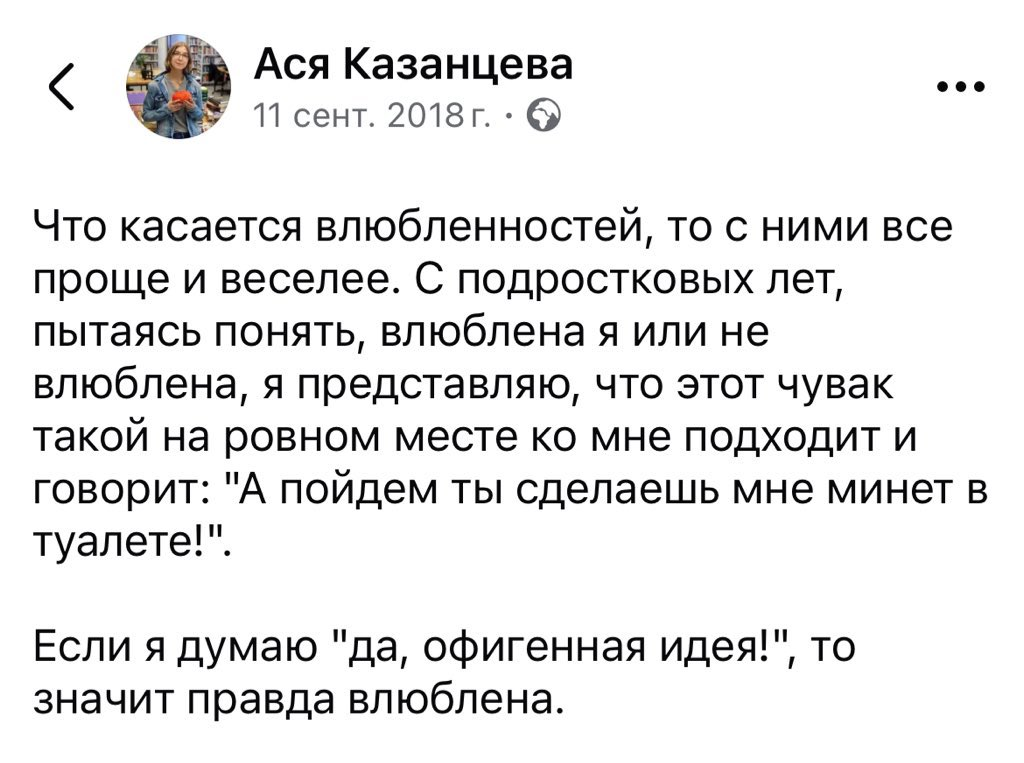 не хочешь общаться по телефону , максу или что там в моде у вас - тогда бегай по кафе ходи в кино и окажется что 19 из 20 , "не готовы к чему то большему чем прогулка" "не отошли от предыдцщих отношений" " извини там ц меня другой типаж " и прочее . и ты будешь как большинство здесь коупяшиз с разорванным очком арря созвониксы фантазеры я сходил на 10 свиданок мне писик не дали. Нюанс в том, что созвониксам эти 10 баб , которых выгуливали тоже скорее всего не дали бы, они их просто скипнули, не теряя времени.
