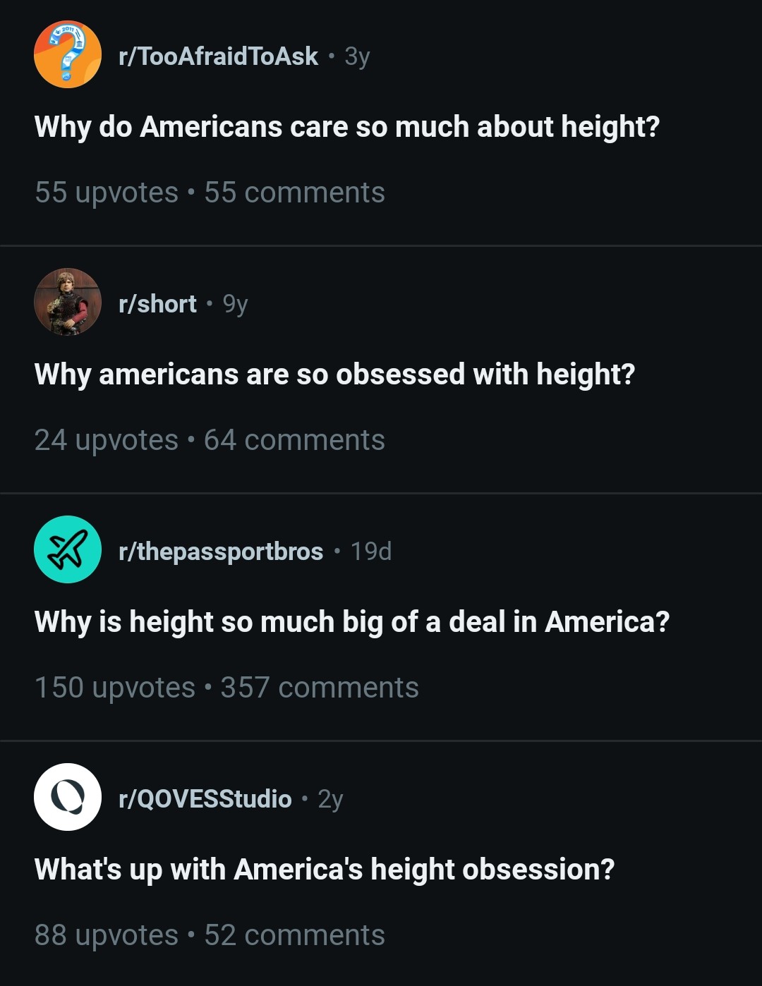 >>10303799 Было такое раньше, потом резко похуй стало. >Единственный мой плюс это Ростик 1,89 Такое дело.. Вообщем ростошизы ошибаются в том плане, что рост это не преимущество перед мужчинами, а существенный недостаток, если у тебя его нет. 80% мужчин для своего поколения имеют норм рост по меркам красоты. То есть в 2025 большинство имеют рост 181-183 (6 футов), потому выделяются только оставшиеся 20 процентов (часть из которой сильно выше среднего, 195-200 см и карланы недоедки, ростом под 170. Вообщем, если ты 185 и сидишь здесь, то это нормально, потому что этот рост обычный, стандартный.