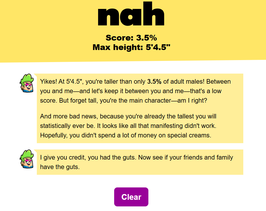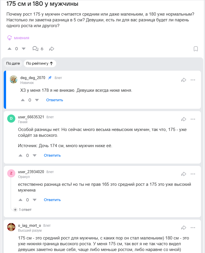 >>10306661 Бля, ещё со школы помню, что если мужчину хотят оскорбить, то именно на рост напирают. Меня тоже девчонки оскорбляли из-за роста, хотя в те времена, а это было очень давно, я ещё не был самым мелким в коллективе - 175 тогда был приемлемым ростом