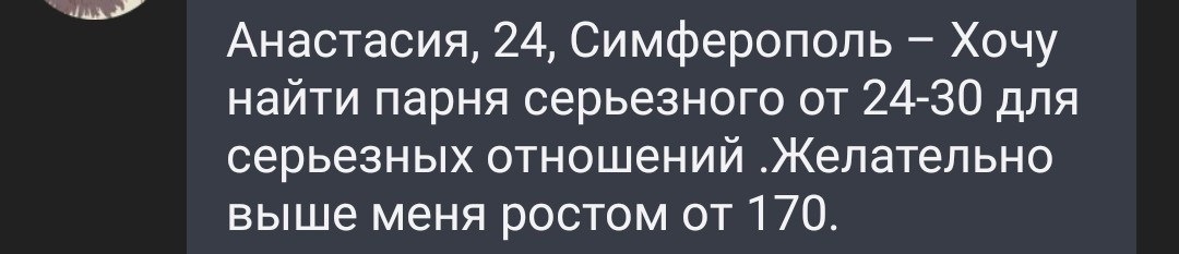 В 2017 году на концерте когда был одном, то тянка подошла ко мне и попросила чтобы я посадил на плечи, ну знаете как есть на концертах когда тянки на парнях. Я ее вообще не знал, но согласился, ничего такая была, но я был молодой неопытный и не познакомился с ней. Это помню из профитов роста который был, а в остальном всем пофик. 186 рост, а на 2017 год это был как 190 сейчас наверное А ещё разве что был в одном заведении полу-клубном, какие то бухие тянки попросили их сфоткать сверху, селфи, сказали что я высокий и фото с лучшего ракурса получится, но ирония в том что возле меня стоял челик 193-195 роста просто всратее меня