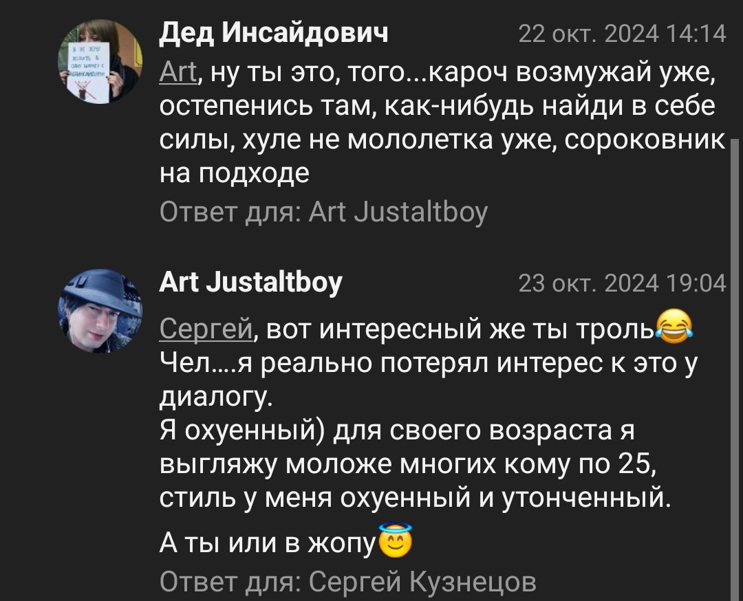 >>10279728 >Бля, в 2025 возраст становится все более условным. Раньше был огромный разрыв между поколениями. Теперь это все намного проще. Ну хуй знает чувак, хуй знает. Я не смотрел гарри поттера, не играл в майнкрафт, не сижу в соц сетях, мемы малолеток могу понять только благодаря знанию английского и других сленгов. Даже моё знание бордосленга поймут тут только олды. Эта вся мем хуйня меняется каждые пару лет, нехуй делать за этим следить. >Можно в 40+ спокойно общаться с 20 летней про какое-нить маняме, обсуждать модные тренды. Ну ебать, а зачем подстраиваться под малолеток? Ты должен быть опытным чуваком, а не рассуждать о Евангелионе(который малые не смотрят наверно). Я лучше выверну тему принцессы мононоки на тему синтоизма или относительности зла, чем буду это манямэ обсуждать. Мне интереснее, а вот малые с трудом уловят даже о чём. Как по мне как будто сложнее с малыми найти общие темы для разговоров, они даже классику в школе часто не читают уже и для них "философия" манямэ кажется глубокой. Есть конечно экземпляры где родители дитятко воспитывали, но это редкость по причине как ты и писал безотцовщины повальной.