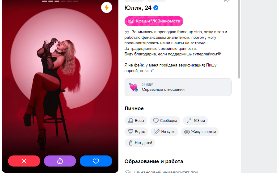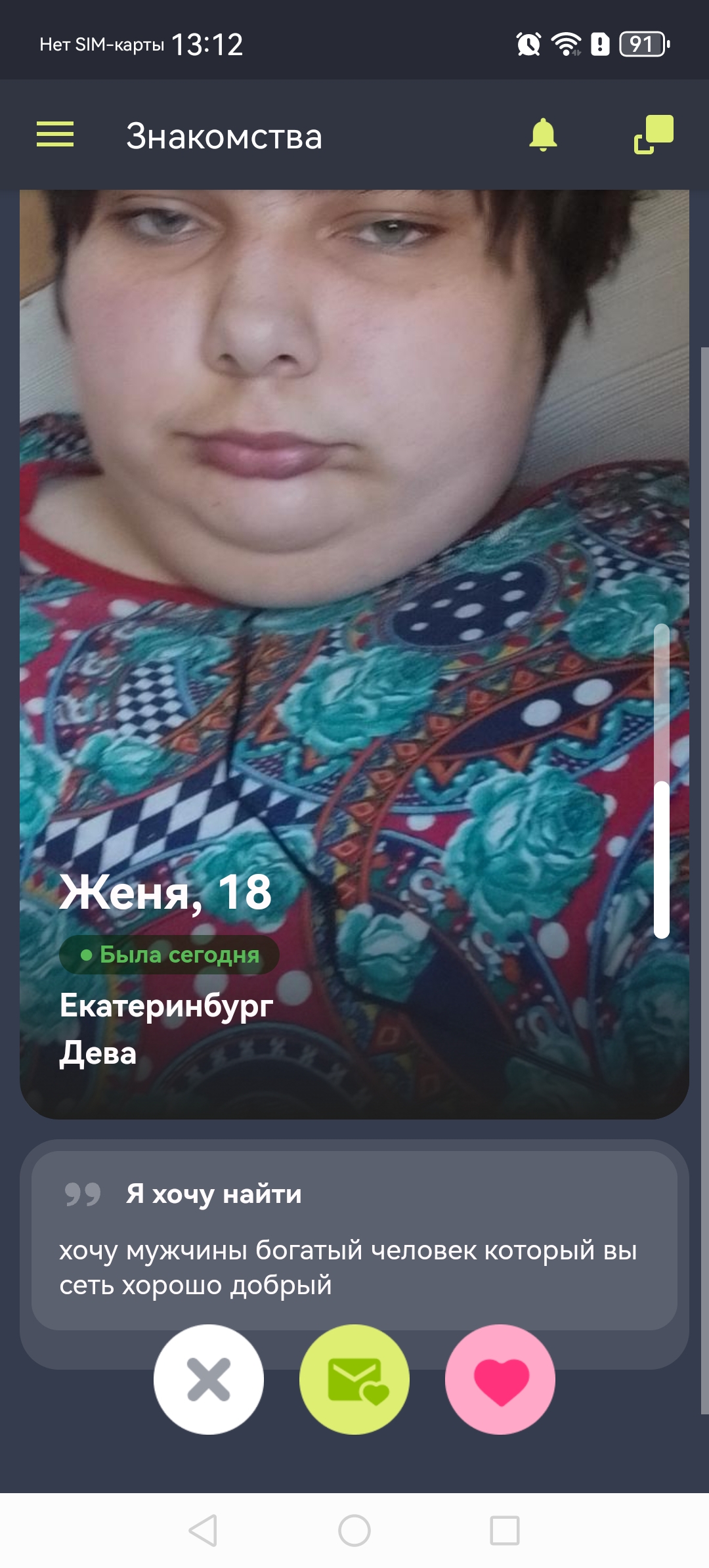 >>10306622 на ДайВинчике взаимки только от жирух(бывают сами пишут и диалог активный ахахах)Стройные лайкают раз в пару недель и оказываются мошенниками с биржевыми пирамидами.Таков положняк онлайн-знакомств мухосранского формата)