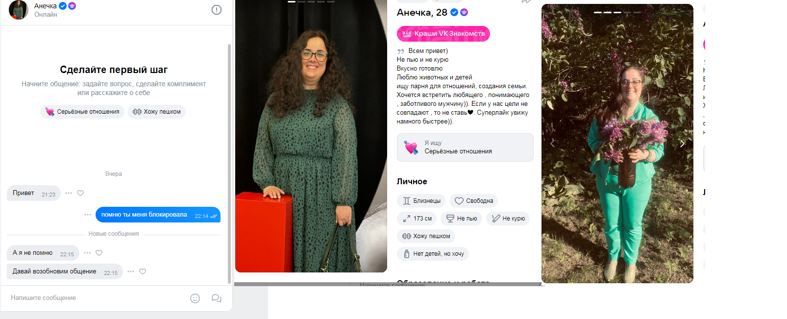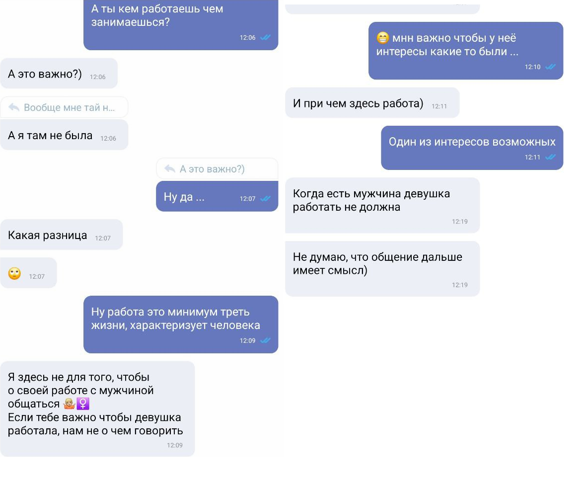 Кароч щас весёлый нет случай был. В вк знакомствах увидел бабёнку, ну прям из моих мечт. Прекрасное лицо, выразительные синие глаза, светлые волосы, немного жирка, размер вроде как подходящий. Я конечно лайкаю... и случается матч! Я немного ошарашенный пишу приветствие нет, не дашь писка ебат, она не в сети, ну и чуть позже я тоже вышел. Где-то через полчаса решил зайти и заскринить пару фоток, чтобы потом мастурбировать если диалог не пойдёт. Захожу в чаты, она в сети и прочитано. Хочу нажать на диалог, и... Он у меня на глазах удаляется)). Нахуя было лайкать, спрашивается?..