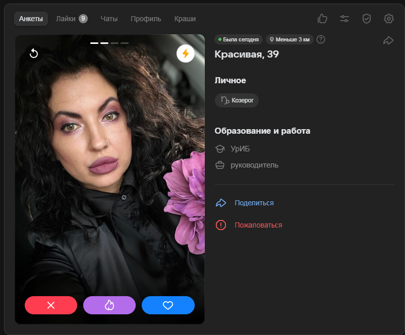 Живу в городе 100к,ПодДС.Скачал пьюр,оплатил на неделю подписку.В ленте половина ебальников из других приложух:мамба,табор и т.д.Большинство уже по именам знаю,глядя на одну фотографию.8 взаимок за сутки.Все ищут СИРЬЙОЗНЫИ АТНАШЕНИЯ.Сука,вы создали анкету на сайте для СЕКСА,блять.Заебали.Нахуя вы лезете своими еблами в Пьюр?Сидите на таборах и мамбах