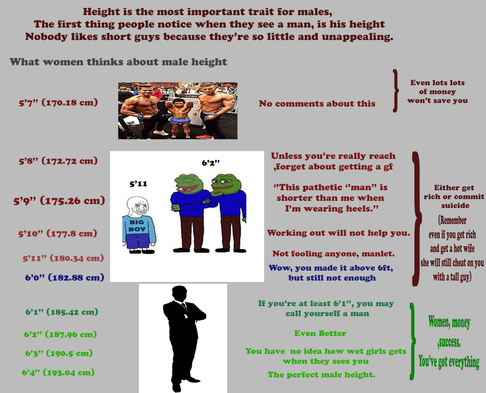 >>10312942 Мне поебать на вашу шизу, я ирл бываю и вижу что красивое ебало нивелирует рост если ты не ниже нижней границы, т.е. 175. Конечно рост преимущество, но 175 не минус, то что ниже уже да, а при 175 ты выше большинства тянок, и пропорции тела обычно вполне нормальные. Между 175 преттиком и 185 уродцем тян выберет преттика и не надо мне свои говновидео где карлицы всратки мриют о уродцах-дылдах кидать, мой опыт ирл куда правдивее чем эта постановочная хуйня для хайпа.