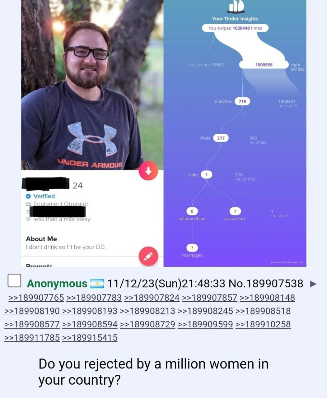 >>10314575 да в принципе не важно уже. я вспомнил что в санаторий чалился с челиком 195 см ростом и норм челюхой пускай и с норвудом но он даже говорил что женщин у него не было и что они все шлюхи. раз он не смог найти то я вообще в пролете. без мировой войны без ядерок и без массовой смертности молодого мужского населения будет только хуже.