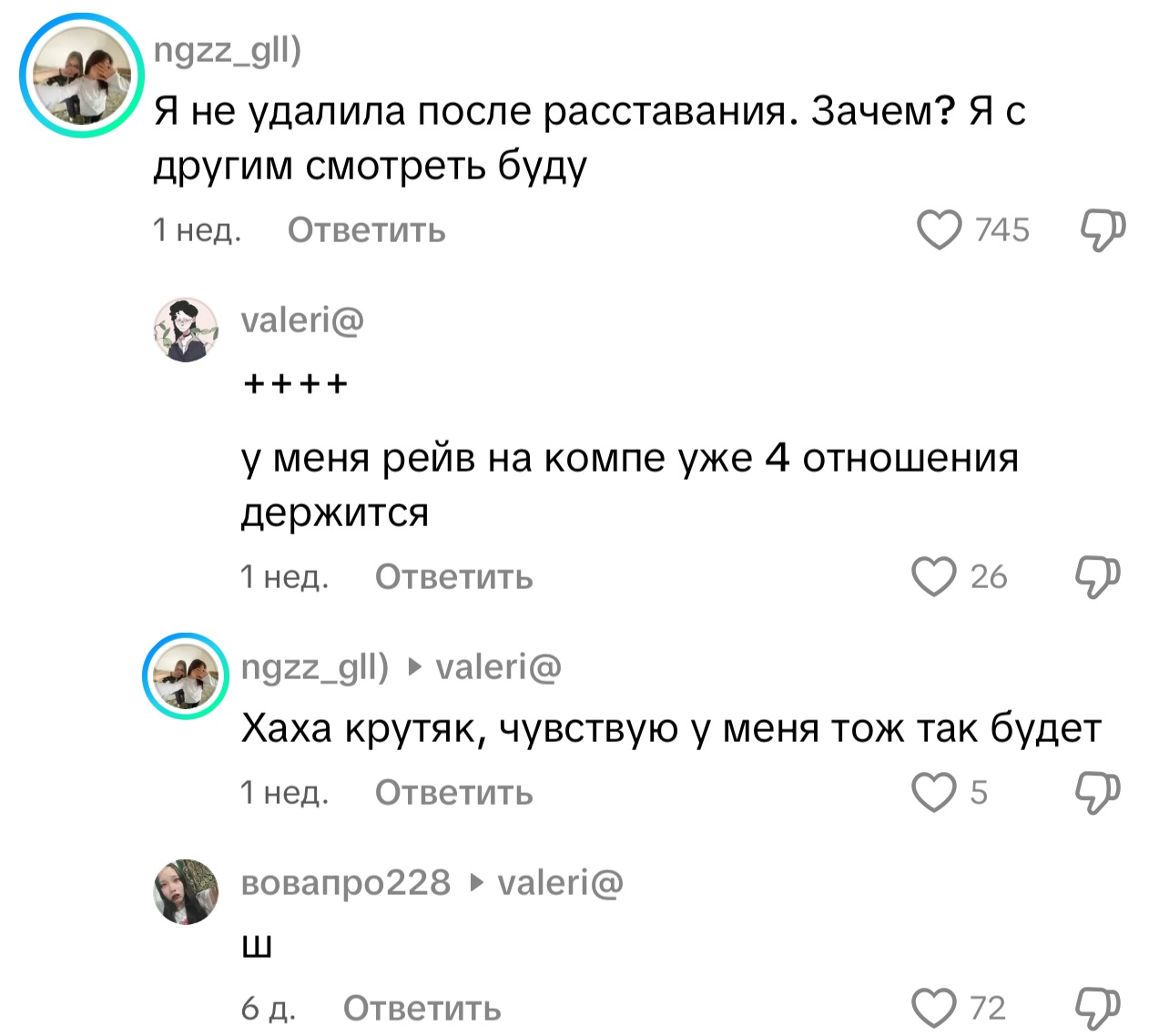 >>10312590 В следующий раз меня дропнули тоже через два месяца после небольшой ссоры. Тян охладела и "уже отпустила меня" спустя три недели отсутствия общения.