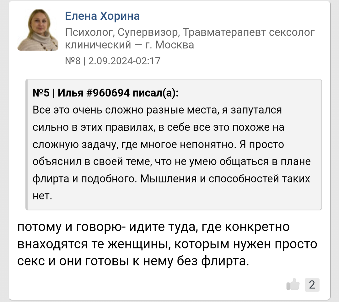 >Со мной ебатся не хочет вообще, я в ее глазах такой интроверт типа и все такое