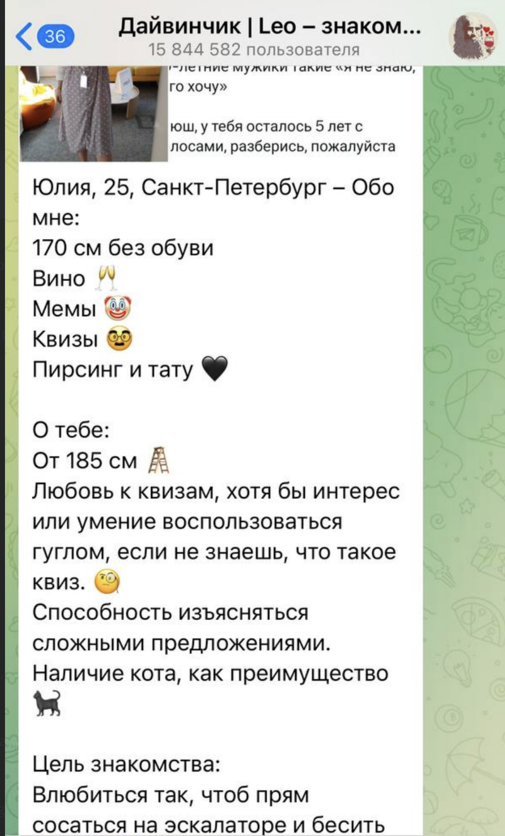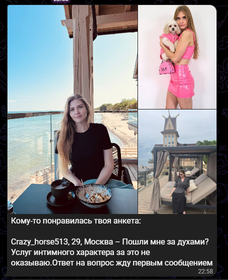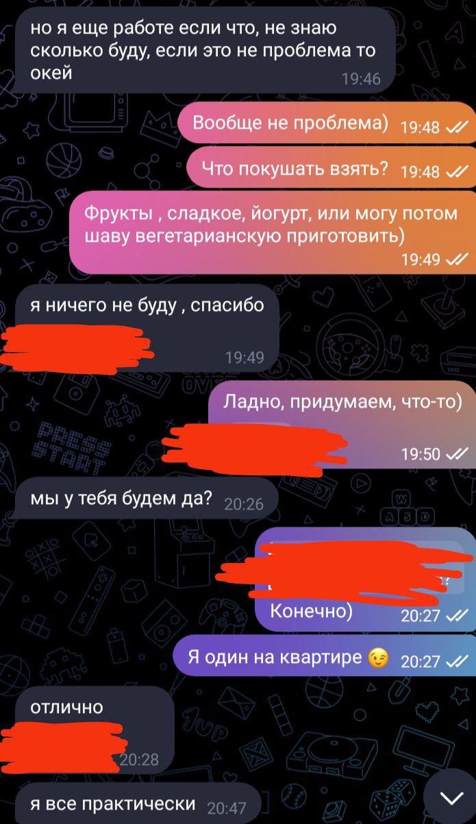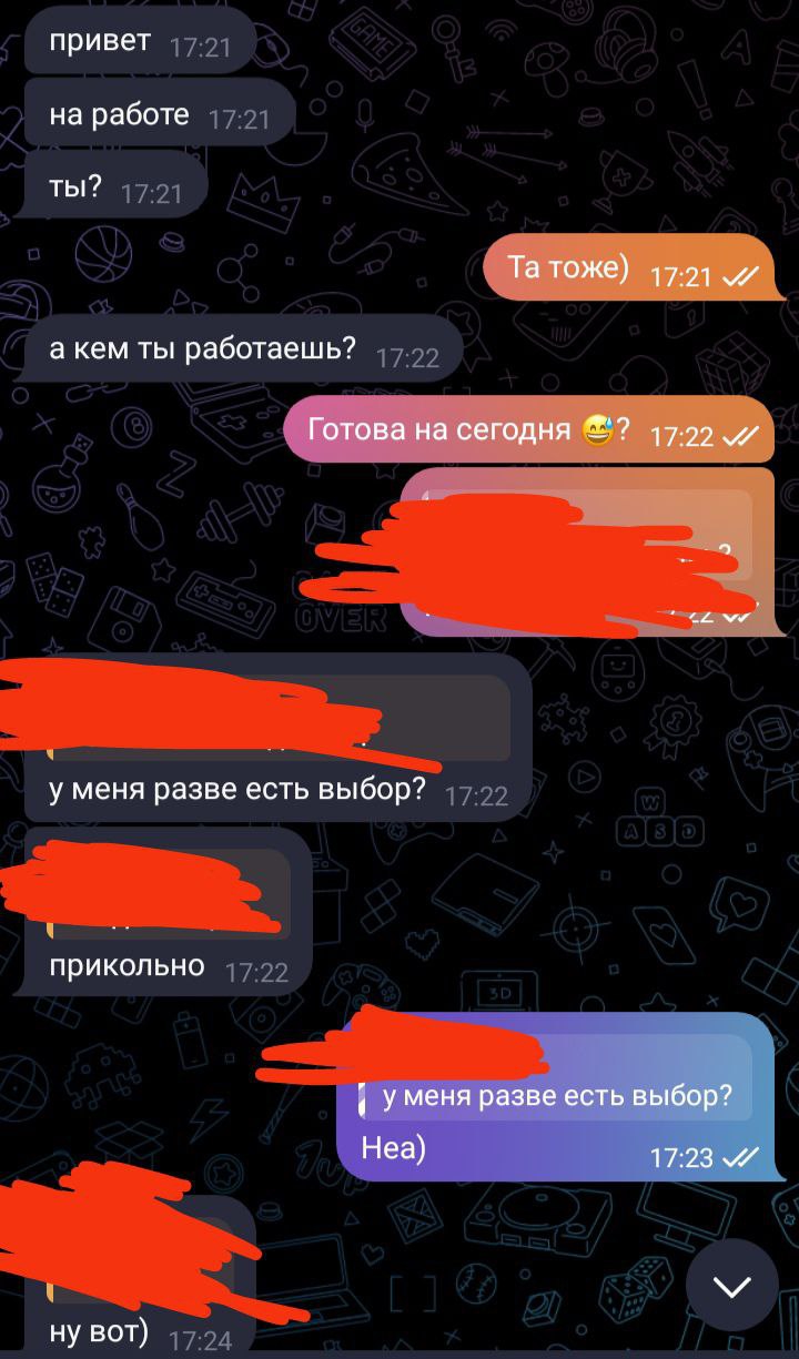 Анчоусы, регнулся в мамбе.. Каждый день летят чето типо просмотров, лайки, потом 1-2 матча прилетает сообщение типа "го в тг. Здесь сисняюсь" и ссылка.. Ну типо заходишь в тг, не переходишь, ищещь по нику, ну да, вроде акк есть, девка, фотки там.. Ну а дальше? Ну я понимаю там парень пытается вытащить тг что б там вывезти на созвон и все вот это вот... А тут то что? Блять, я откровено не выкупаю этого рофла... Это развод? Меня заскамить чтоли пытаются? Ну а прикол то в чем? Ну типа в чем цимес этой затеи? Чтобы блять что?