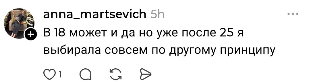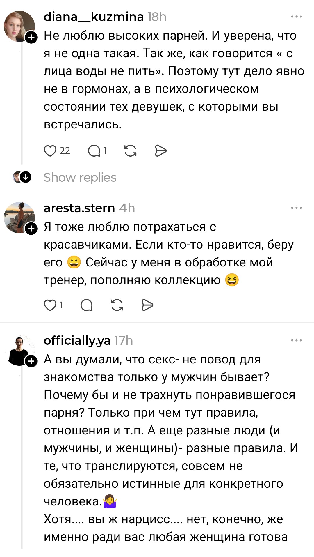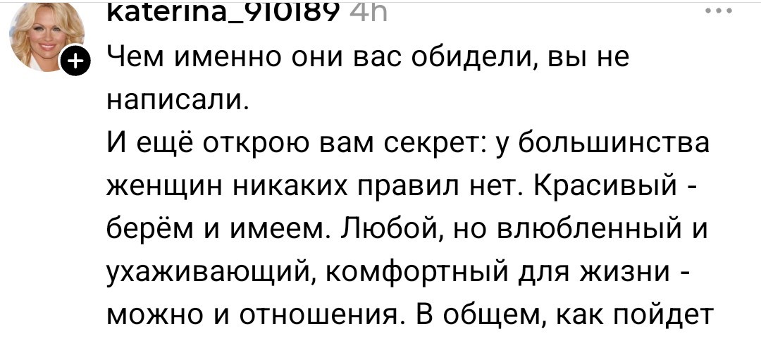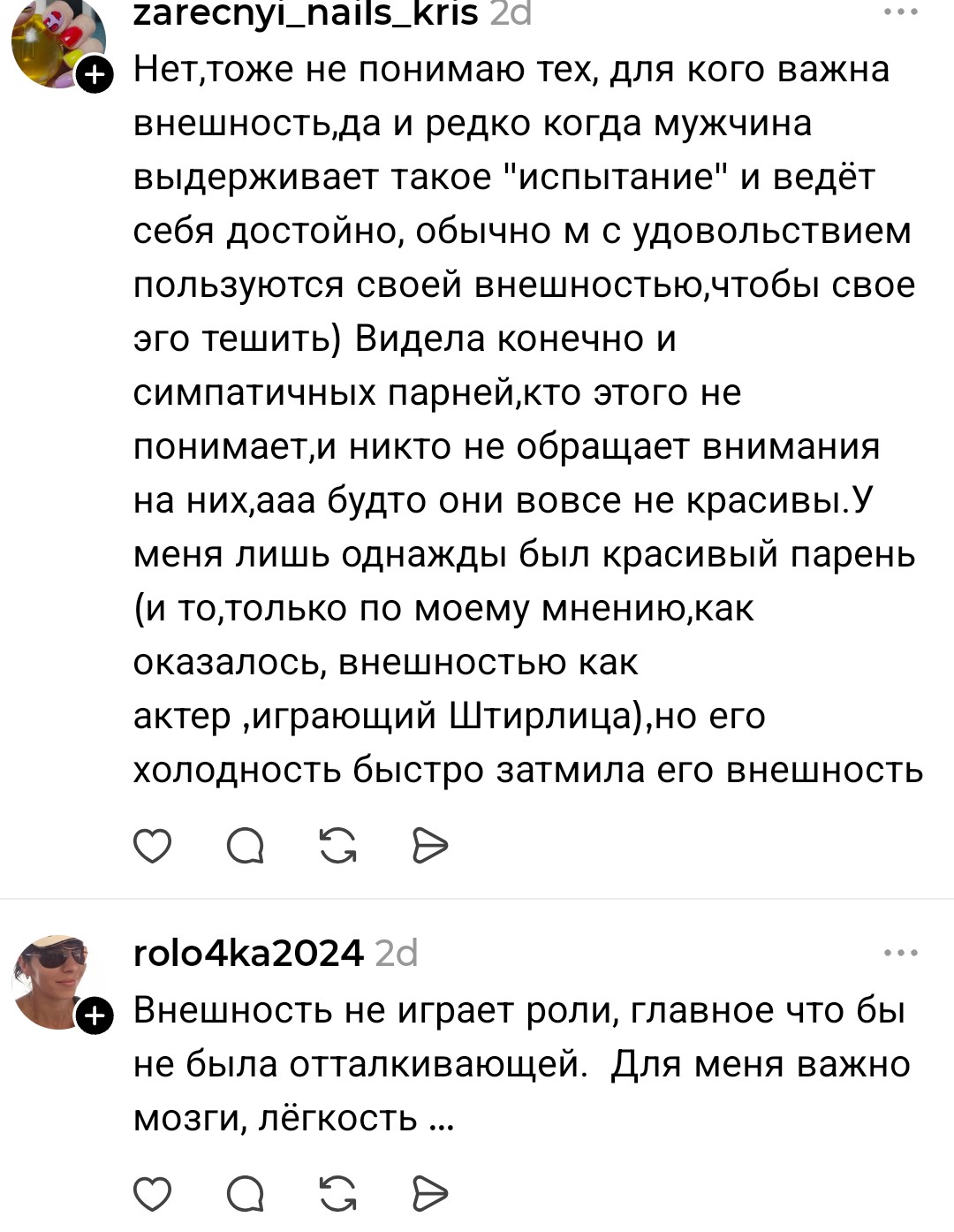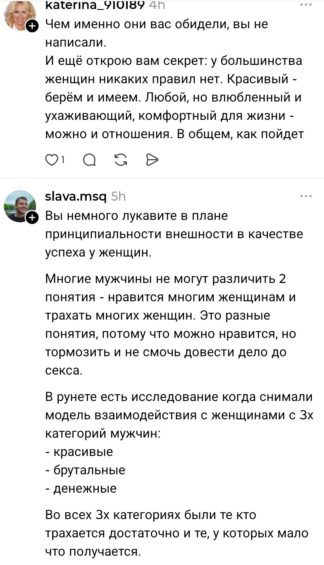 Всё хватит продолжений. Судя по многим скринам большинство отрицает важность внешки или что внешка важна до 25, а дальше женщины якобы умнеют и на другое смотрят