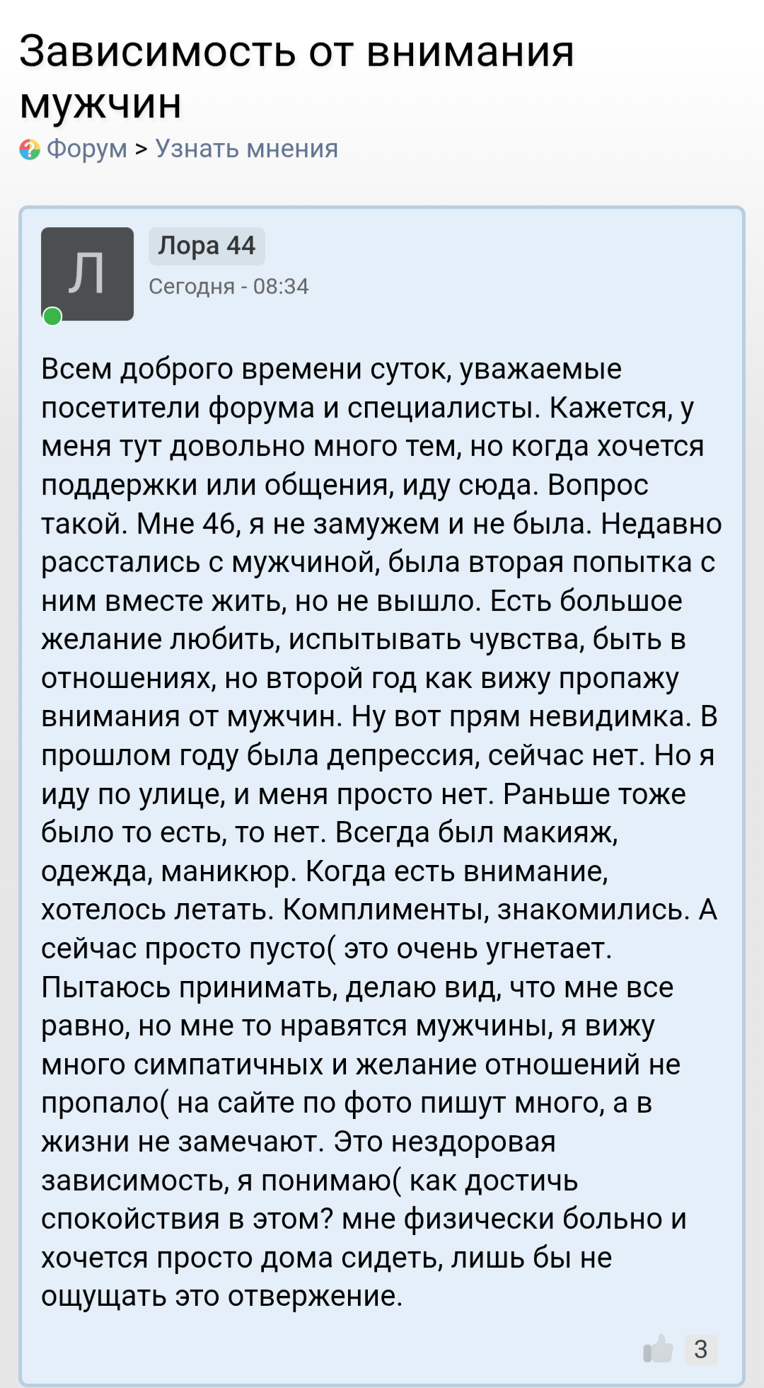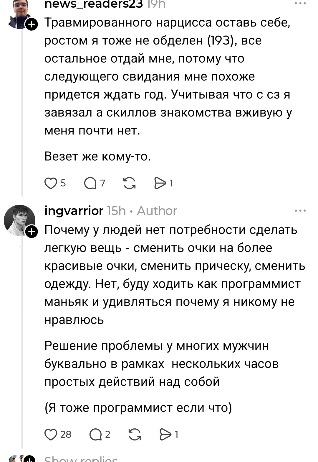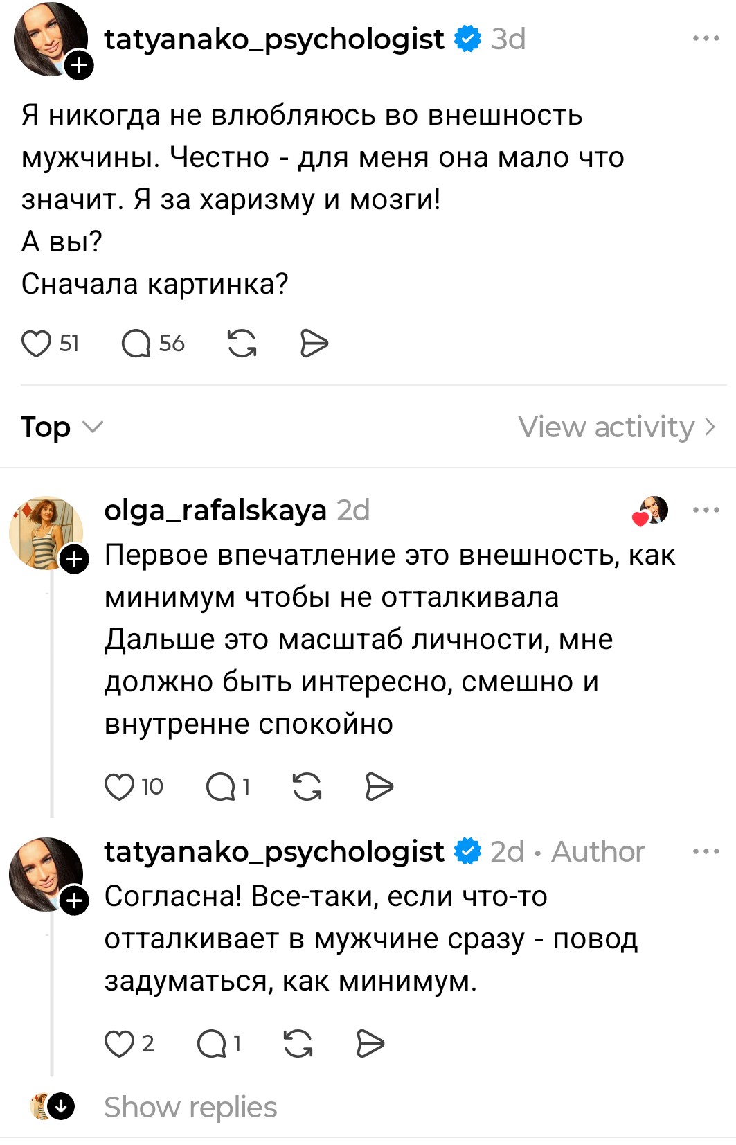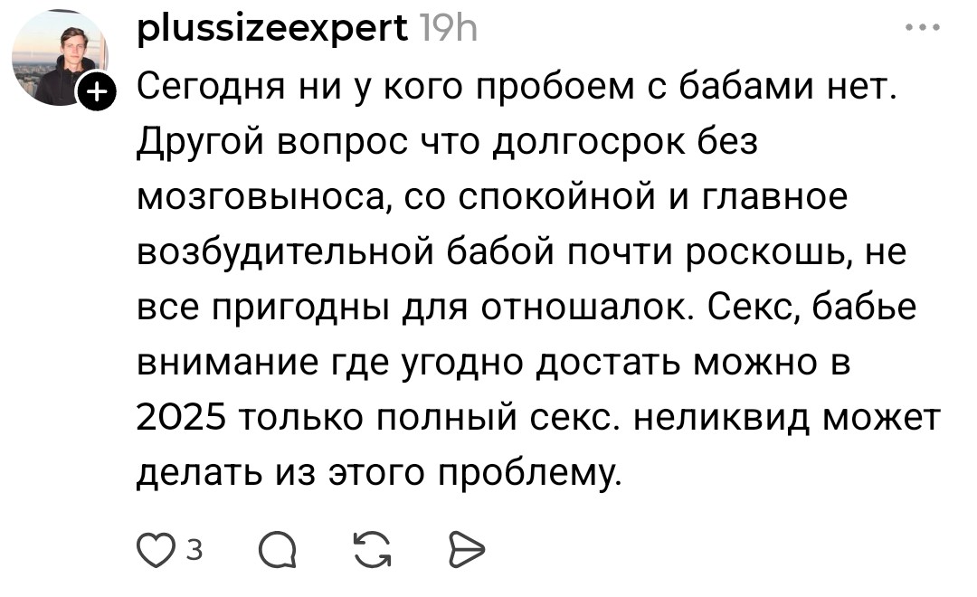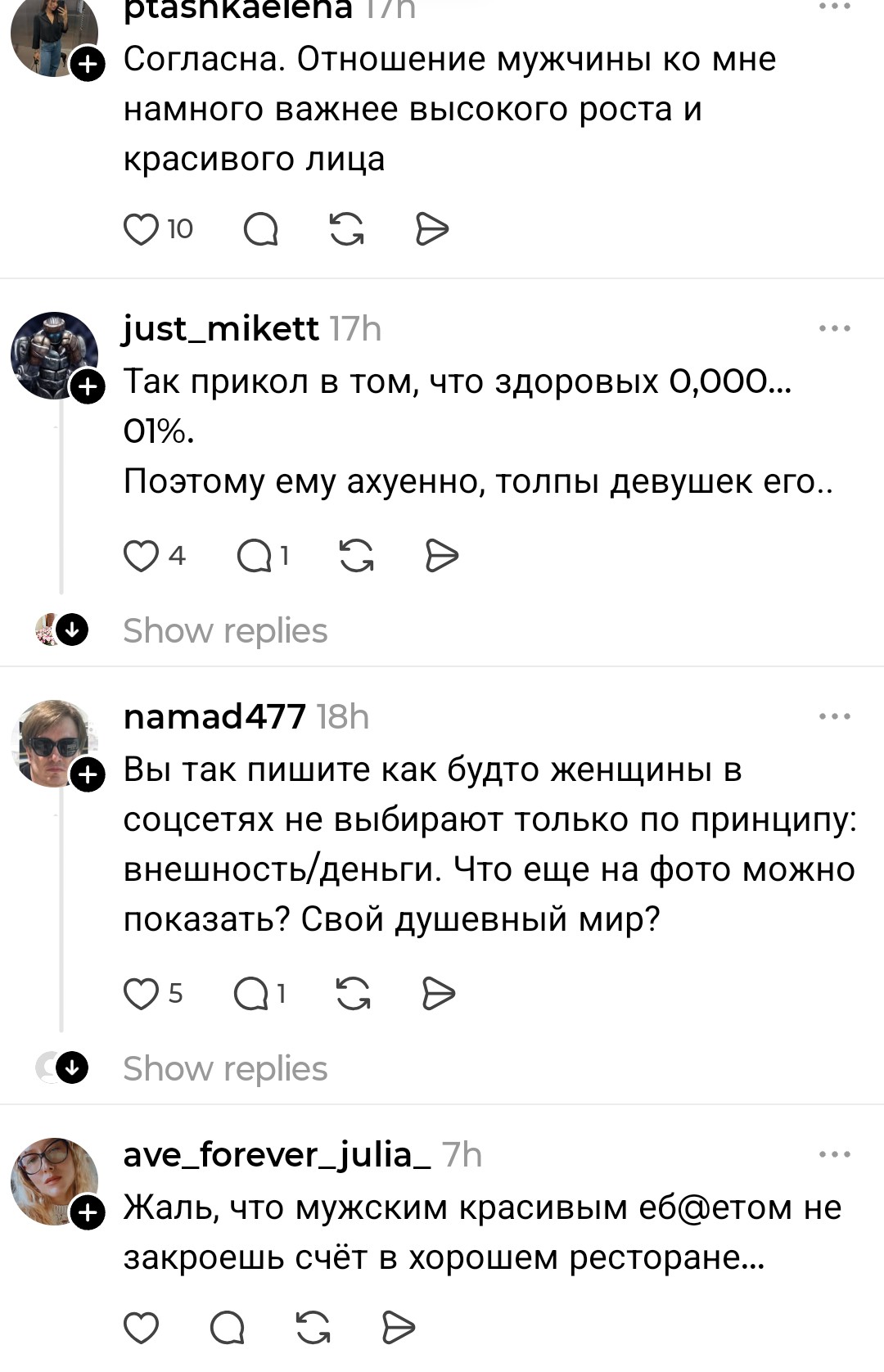 Всё хватит продолжений. Судя по многим скринам большинство отрицает важность внешки или что внешка важна до 25, а дальше женщины якобы умнеют и на другое смотрят