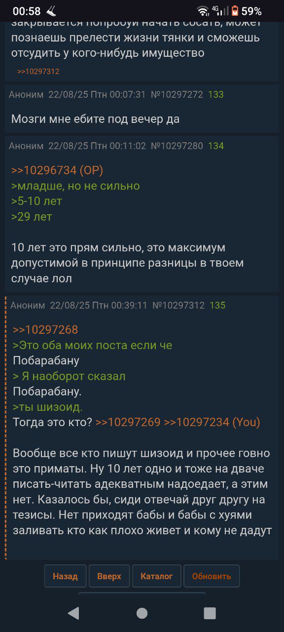 >>10324810 >А чего ждать? А что, лучше приносить публичные извинения на камеру как собака обоссанная или отъехать на бутылку как поднебесный? Я б лично в морду дал если б к моей сестре или дочери к таком возрасте какой-то скуф яйца подкатывал, физически то выросли, а мозгов еще нет, тупые инфантильные наивные как щеночки. Слабо мне верится что тупая малолетка может представлять для взрослого мужика какой-то интерес кроме поебать и бросить. Мои одноклассницы все кто замуж выскочили после школы к 25 уже рсп остались поголовно. >>10324836 Ты что, таблетку от шизы забыл принять? Блядь, подрочи уже, еблан, да успокойся.