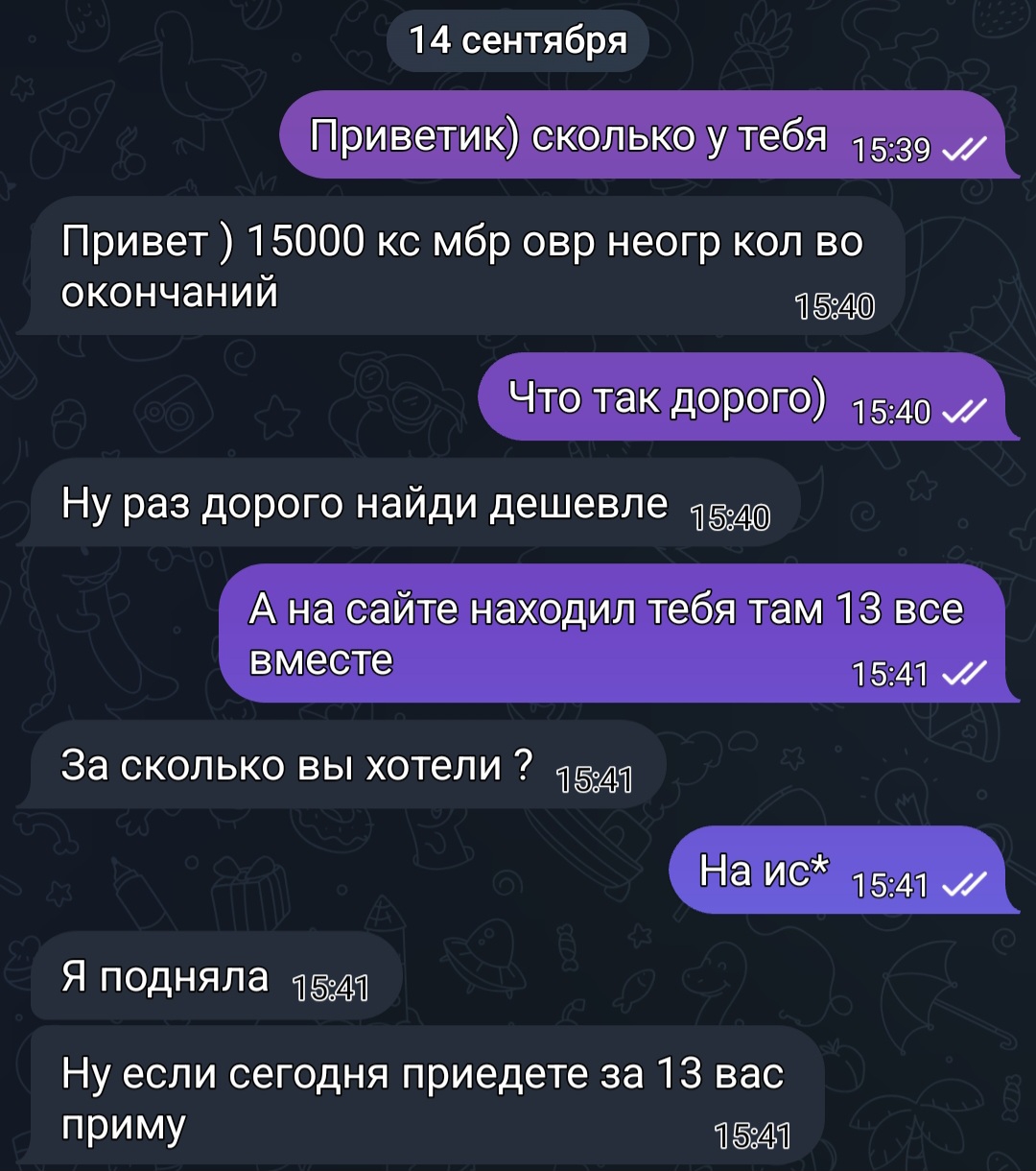 Все, что надо знать о шлюхах: "Идеальный гость это..? Тот который не смог приехать, но все-равно отправил 100к за встречу." с ТГ шлюхи.
