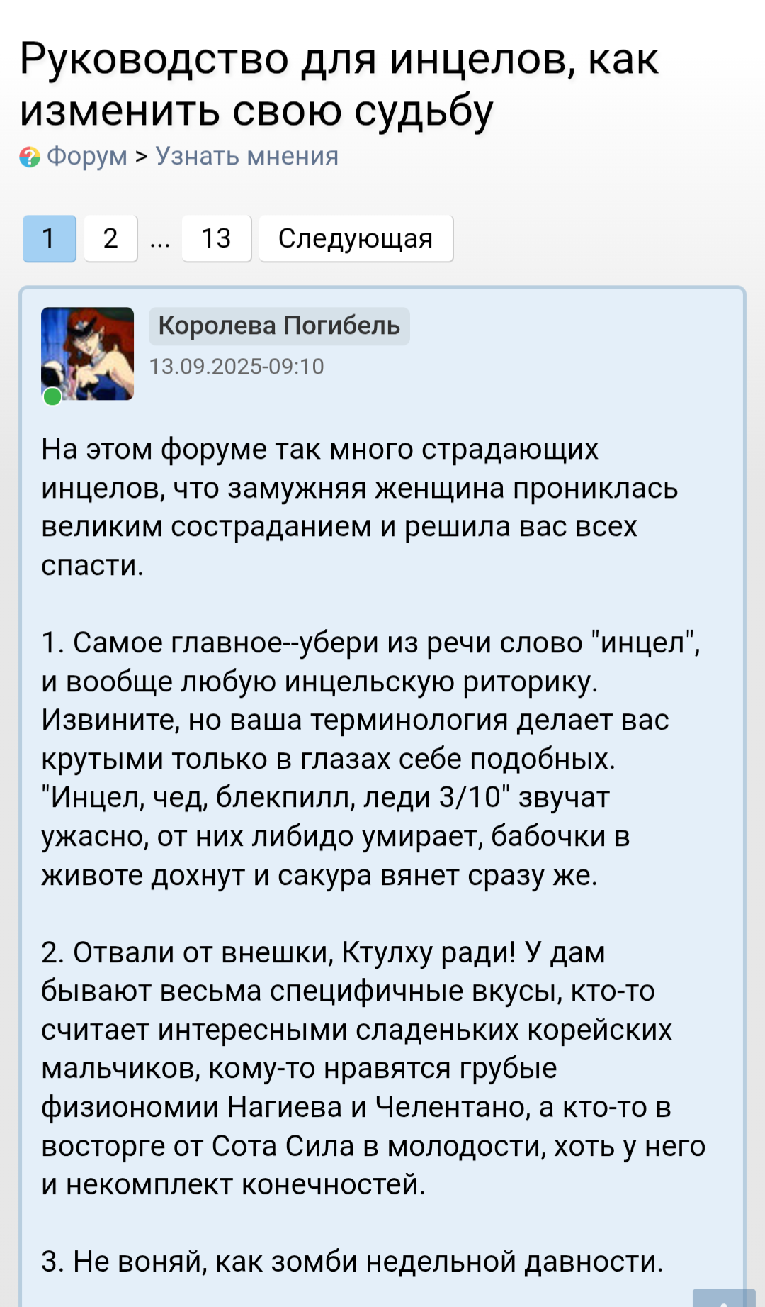 >>10329114 Ахуеть, тут сразу и прийми душ, и уважай женщин, и не забывайте бетабаксить, просто набор нахуй, спасибо натраше что таки прониклась жалостью и освятила инцел тред пиздятиной.