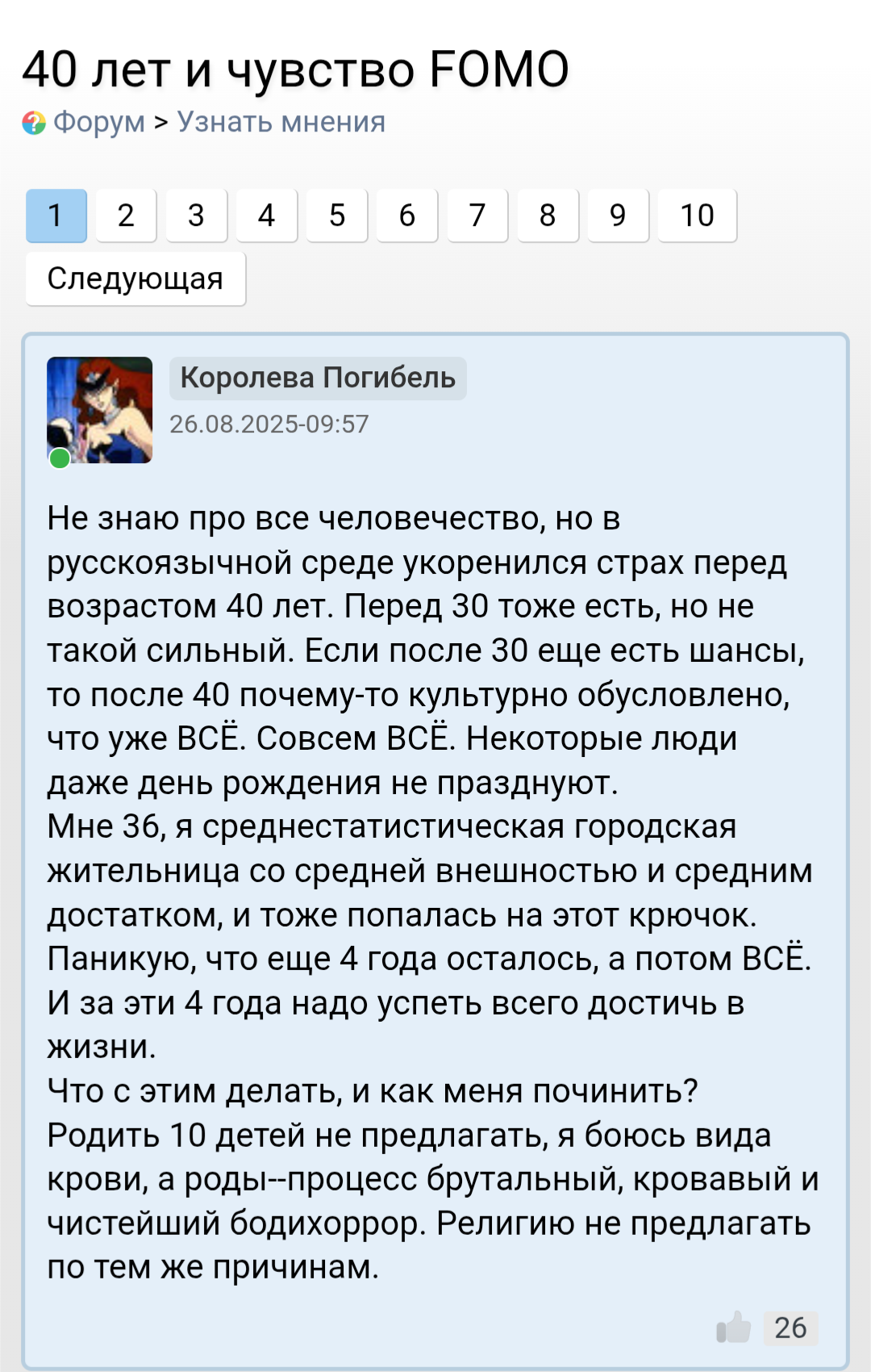 >>10327913 Думаешь, не вывезу? А в чем именно? Я просто сам какой-то незрелый инфантил, застрявший в студенчестве, для меня мои ровесницы - как будто ровесницы матери по ощущениям. Я не так давно с одногрупницей ходил пива выпить после 10 лет разлуки, так мне хотелось к ней на вы обращаться, хотя по молодости все норм было. Ну и я писал в прошлых тредах, что мне безумно хочется летний роман со студенткой, потому в моей молодости его не было. Я уже одержим этим. Может, мне к психологу сходить? Хотя, я ходил по поводу комплекса роста и не помогло