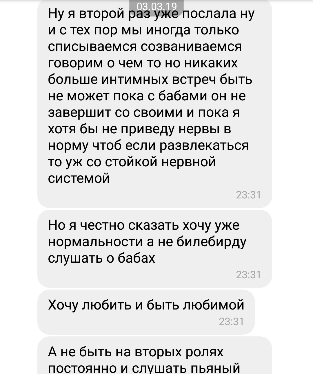 Никогда, слышишь? Никогда не занимайся такой хуетой в переписках с тянами. Если она еще может чет могла тебя проверять, может бы очухалась и захотела продолжить общение(что вряд ли, чувствую там свиданка была почти в духе этой переписки), то вот после такого твоего захода точно нет.