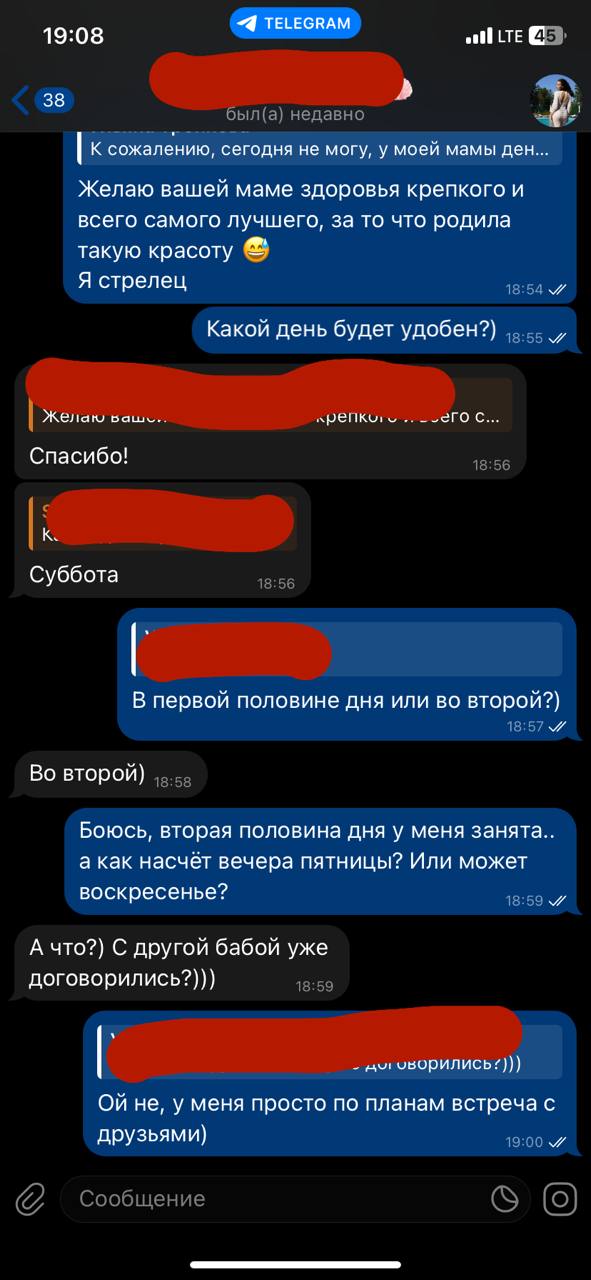 Договорился все-таки с тян, про которую писал >>10332813 →, на встречу в выхи, но вообще не ебу как до этих вых дотерпеть, учитывая, что она то еще бревно в общении. Уже стараюсь чаще чем раз в час не отвечать, чтоб не душиться еще сильнее. Я бОльшую часть попсовых тем исчерпал уже, там по классике, никуда не хожу, ничем не увлекаюсь помимо того что в универе проходим. Про универ как я уже говорил, она общаться не хочет, про животных обсудили чуть, показала мне свой зоопарк. Че дальше то делать, аноны? Такие часто попадаются, нужен какой-то гайд. Может просто в игнор уйти до назначенной даты? Но боюсь, что слиться может из-за того, что забил на нее хуй.