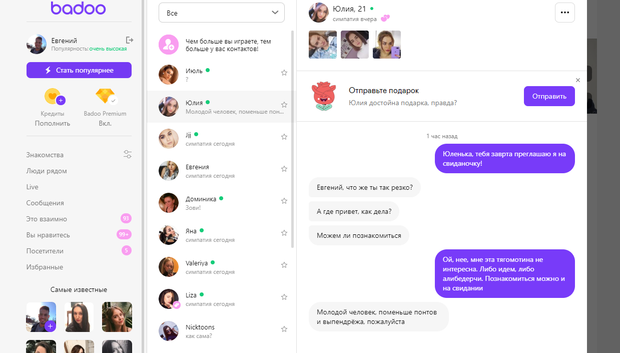 Даже если среднетянка хочет обычнокуна - ей подсовывает на бесплате онли чедиков, надо их пролайкать , и только тогда идут куны активные с премиумом, потом где хуй знает на какой сотне идут обычнокуны на бесплате с низкой активностью