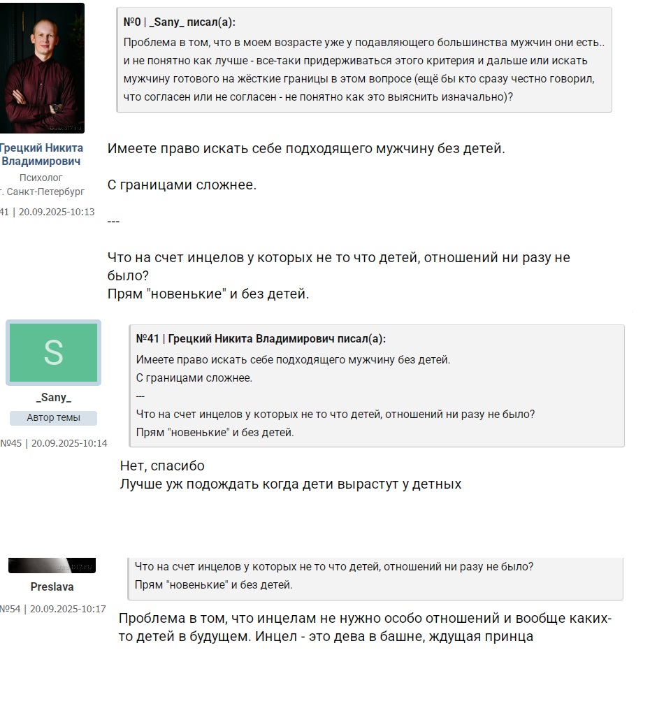 Откуда инцели в России? Тут же не бургерская субурбия где дети не могут даже из дома сами выйти - некуда, незачем и запрещено законами. В России ты же лет с 6-7 уже сам гуляешь как хочешь, гарантированно находишь дворовую компанию и тем самым имеешь социализацию. Всякие там кружки/секции стоят ничего, ты там тоже с пацанами/девчонками общаешься по любому. Нет оснований для прорастания инцелешизы же.