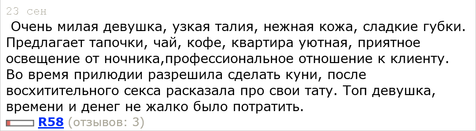 По совету проверенных ходоков третьего дня посетил феечку Мишель. Прикладываю отзыв советовавшего. От себя скажу, что внешне и правда красотка. Очень невысокая, очень упругая, спортивное тело. Маленькая пирсингованная грудь. Ластится, активно участвует. МБР без особенностей, видали и лучше, но хорошо в целом. В соседней комнате была подружка с гостем, видимо. Единственное о чём никто не упоминает это большие тюнингованные губы, с её слов хочет увеличить ещё (уже 7 раз подкалывала). Для меня не проблема в целом, на встречу не повлияло. Целуется так же активно, но без языка почти. В целом рекомендую к посещению. Настроение создала отличное, всё что надо на хорошем уровне делает. 10к, +3мбр +2 поцелуи https://dev.intimcity.guru/indi/anketa775894.htm