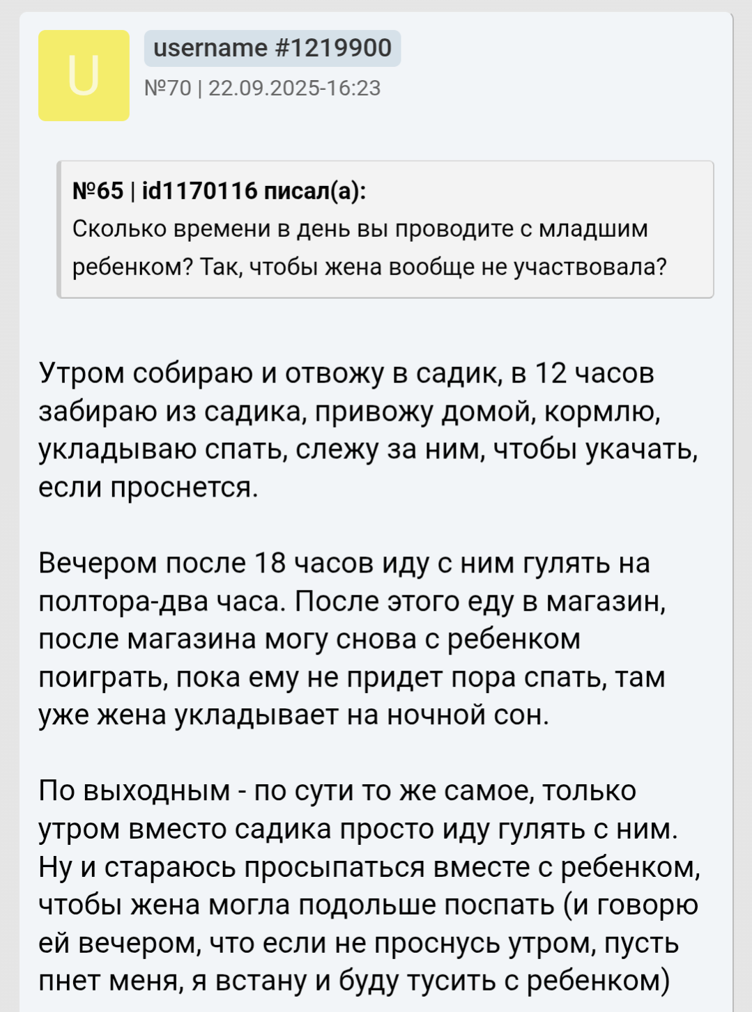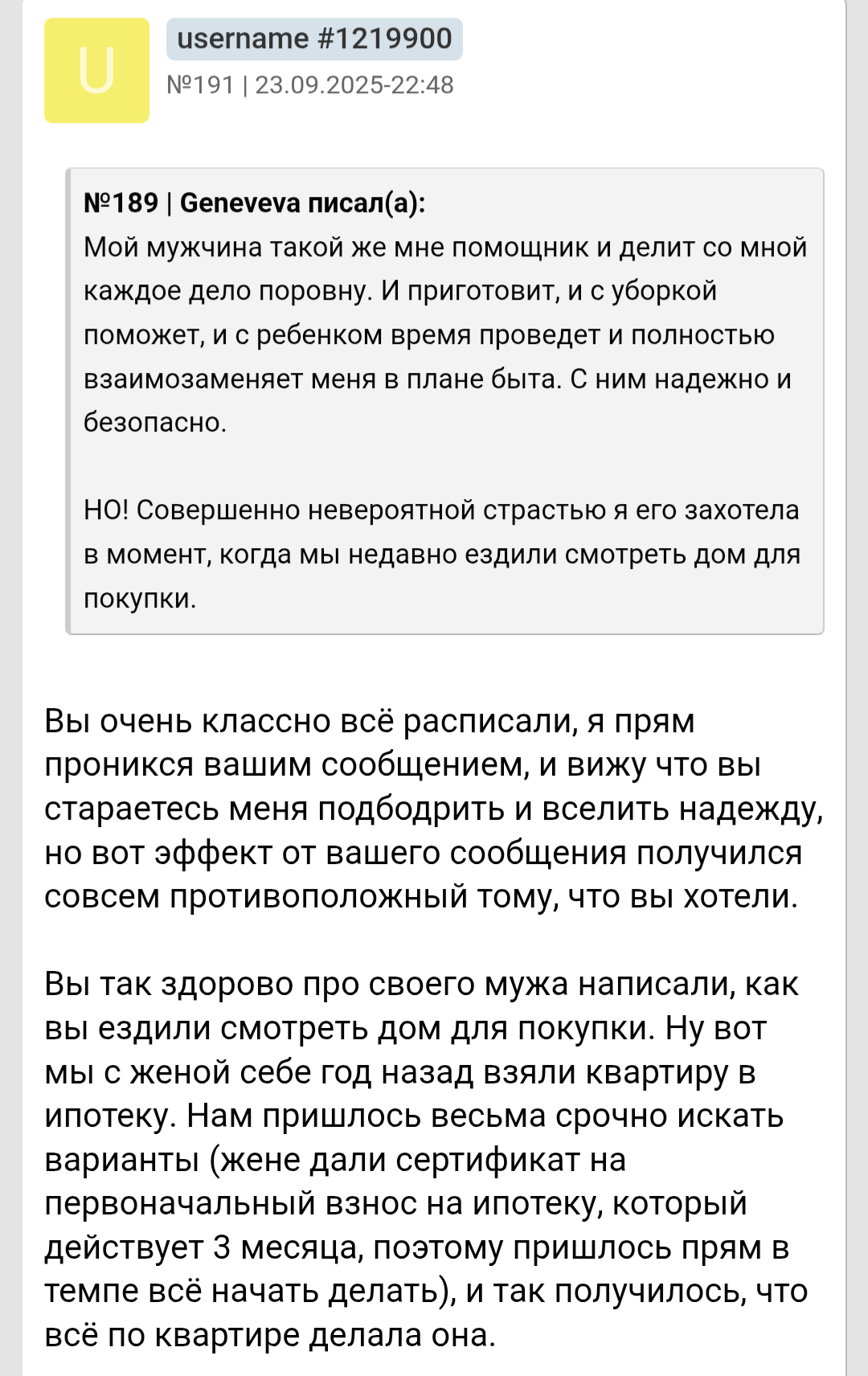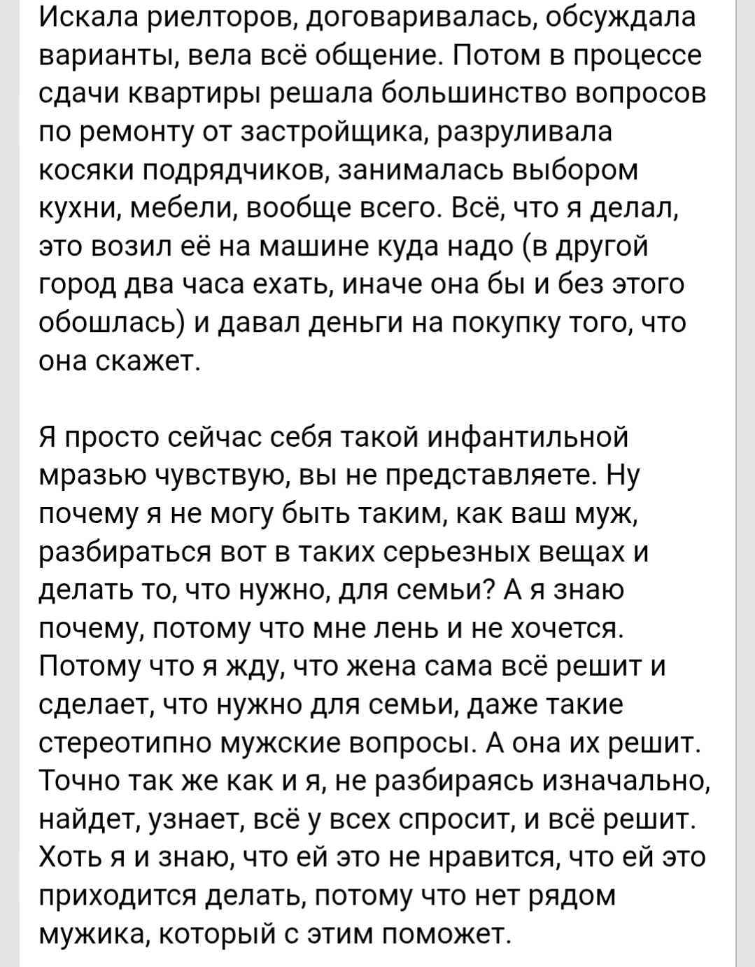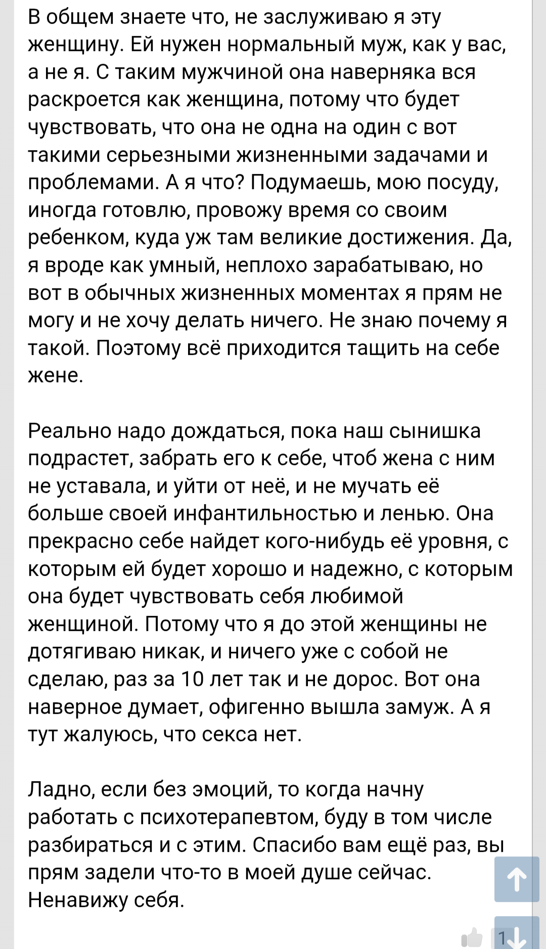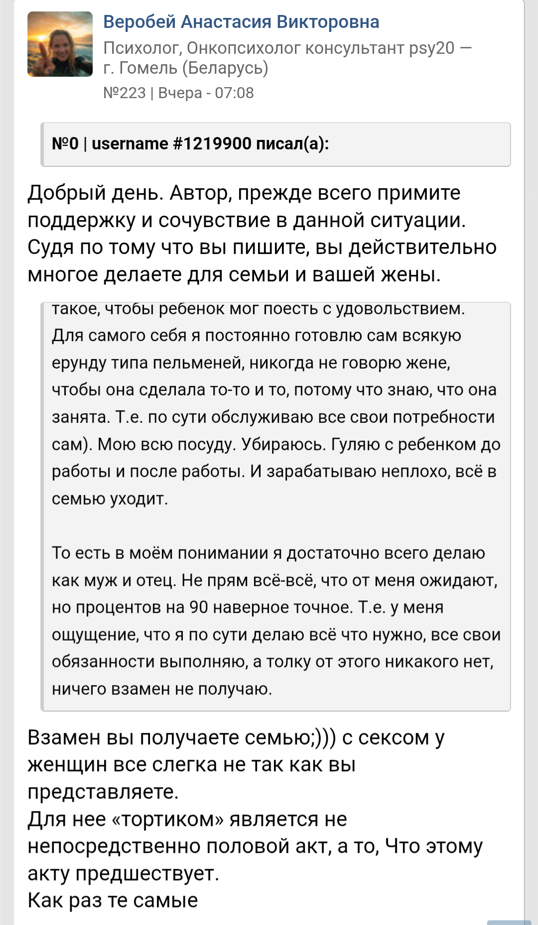 >>10343596 Я охуеваю с ситуации: чувак и работает, сам себя обслуживает, занимается ребенком, но все равно не достаточно хорош, чтоб получить хоть иногда секс от жены! Это фантастика какая-то!