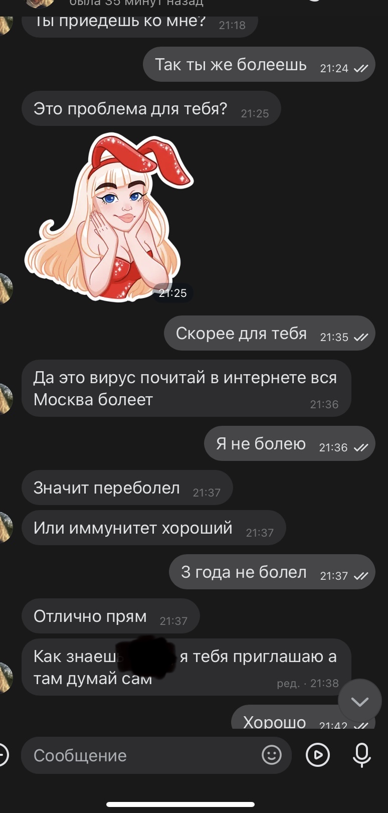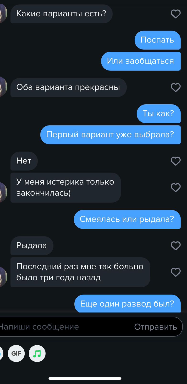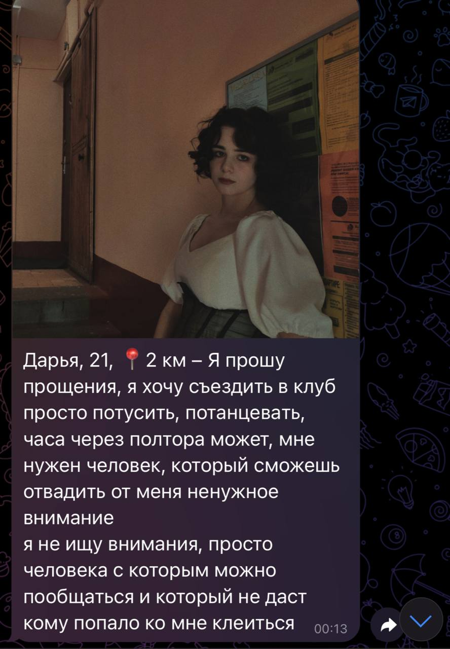 Вот прямо сейчас есть тян, без созвона, просто общался, она начала про спиться говорить.