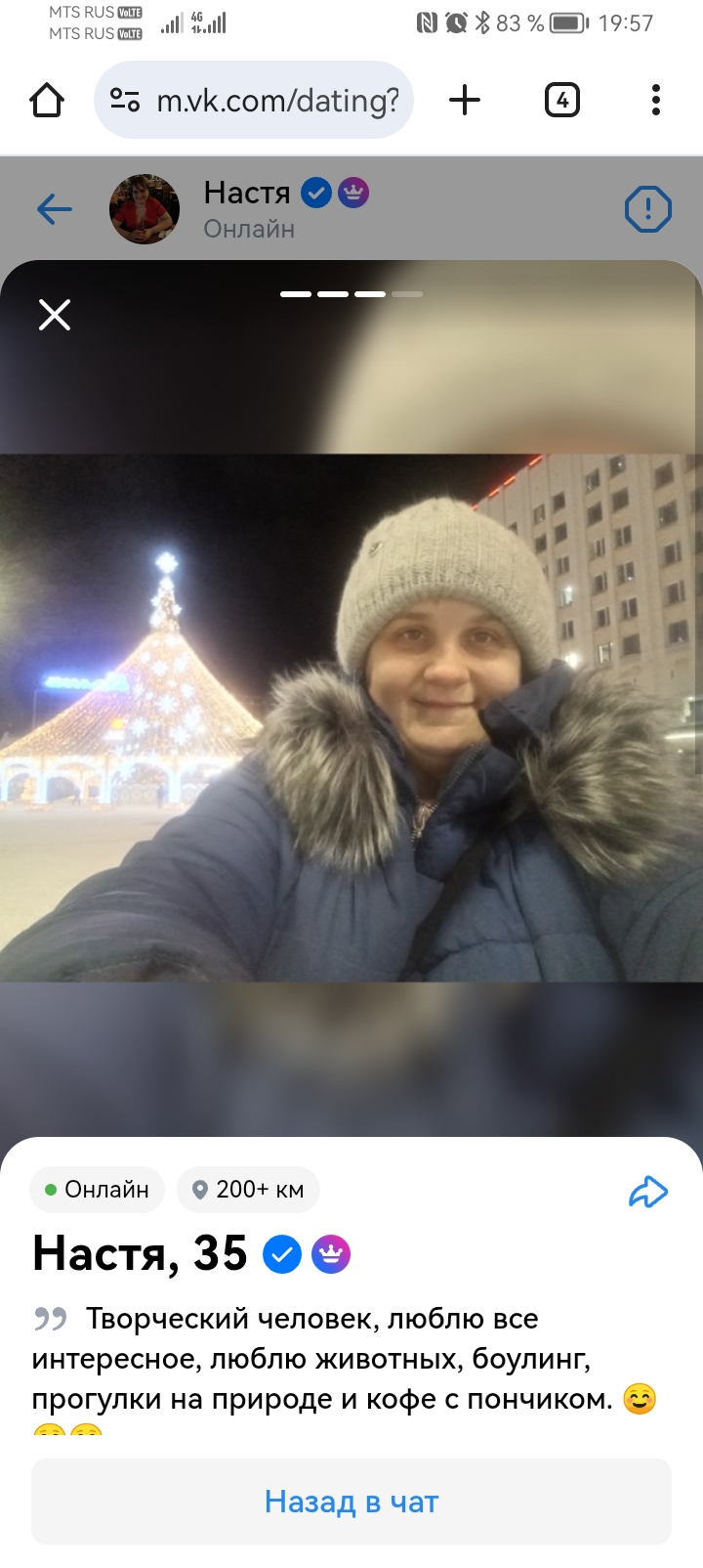 Я анон, который всё ныл тут про шадоу бан в говнинчике. Прикиньте, сегодня он у меня внезапно заработал, и тут же стали лайкать (скам боты конечно, но они служат для меня индикатором что мою анкету хотя бы видят), и сегодня одна ответила на мой лайк и оказалось что она норм ведёт диалог, не односложно-одномозгоклеточно как обычно бывает