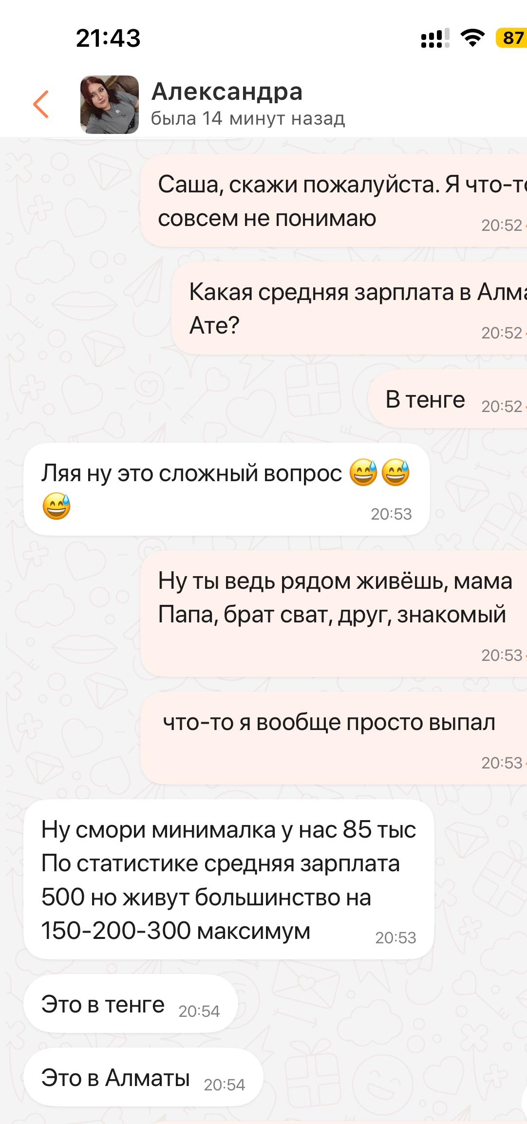 Вот. Типа того,барбосы. Этот подкат далеко не первый. Катил шары к проводнице. Катил шары к бабе на ресепшне (подкатил хитроумно, она ошиблась и не в тот чат отправила мне в ответ по Whatsapp сообщение, а я ей предложил связь и потеснее. Сначала ватсаппаом, потом на ресепшне, прямиком). Да, отшила, но похуй, она в таком месте работает что неудивительно (ресепшн гостиницы).