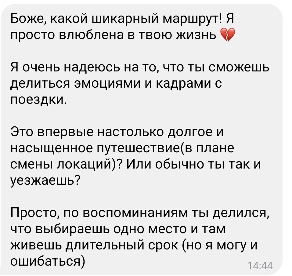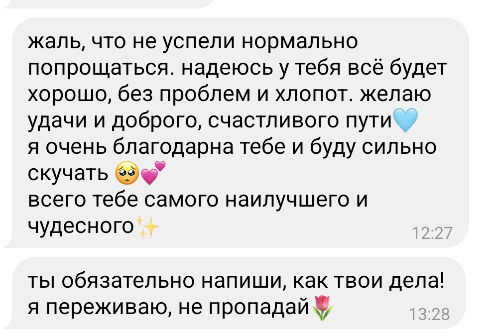 Вот этот твой коммент хотел написать, что гига-база >>10351273 Почти каждая из тянок, с которыми у меня завязывается вовлеченное общение пишут что-то в духе "я захожу в пьюр чисто тебе ответить, ты оказался единственным нормальным собеседником" или "го в телегу я собираюсь удалить пьюр". Короче да достаточно просто блять быть заинтересованным не только в ее писике но и личности и по человечески общаться (ну и иметь навыки общения), и всё будет классно.