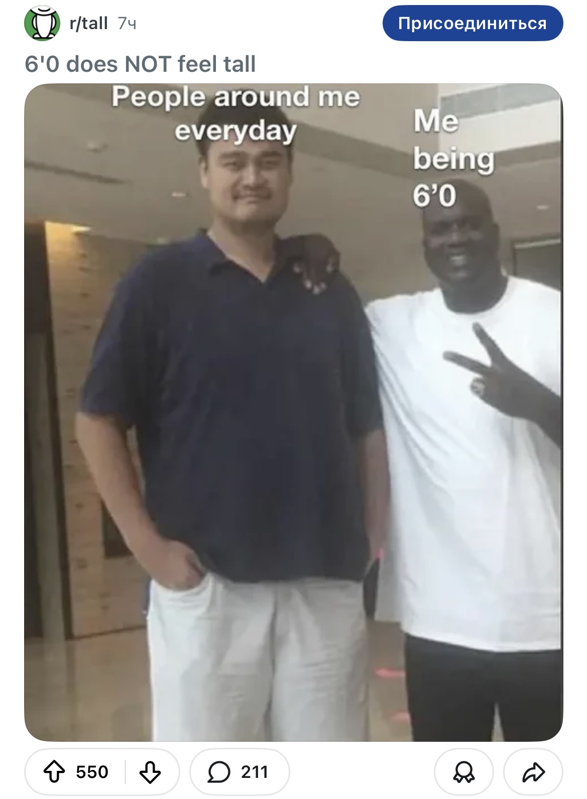 >>10380121 >Я понимаю ещё природа бы наградила ростом под 190, сидел бы тут писал мол как он тебе мешает Ты не представляешь, как мне печет, когда я читаб посты типа у людей с большим ростом куча проблем со спиной, ногами и т.д При все том, что как раз у моих рослых занкомых проблемы со спиной очень лайтовые, просто процентов 10 от того, что у меня и ноги у них не болят, а у меня постоянно болят пятки