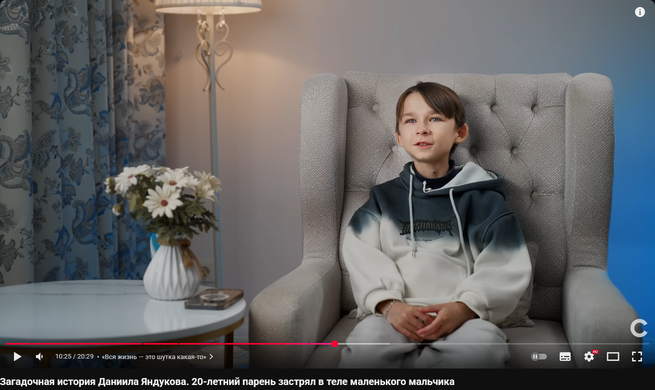 Посмотрел интересный видос про пикрила. Ему 20 лет, рост 140 см, вес 23 кг, не девственник. Говорит, что людям нравиться его внешность. Цитаты: -"Если было лекарство, которое бы я принял и стал обычным - то я бы оставил всё как есть". -"Девушкам я нравлюсь, мне часто знакомые парни завидовали".