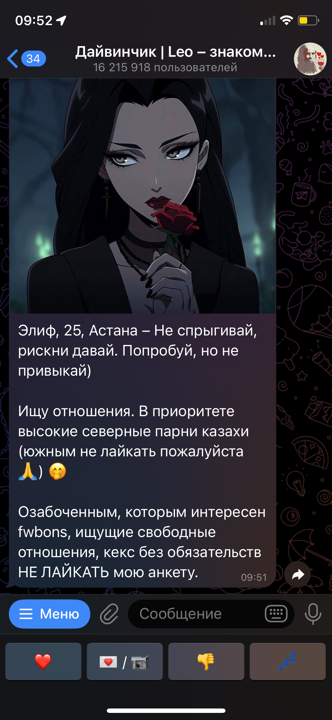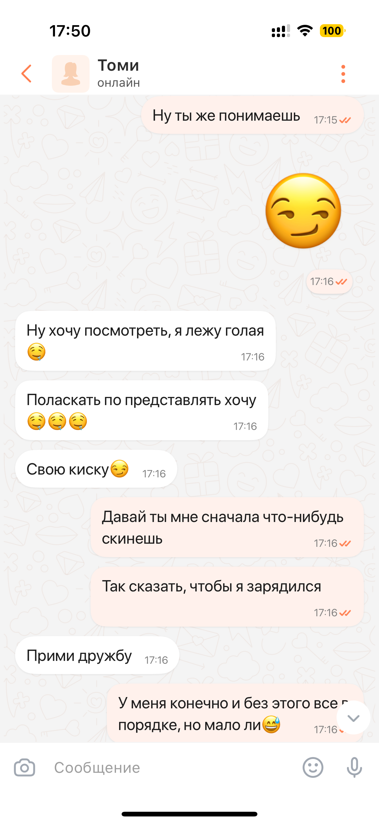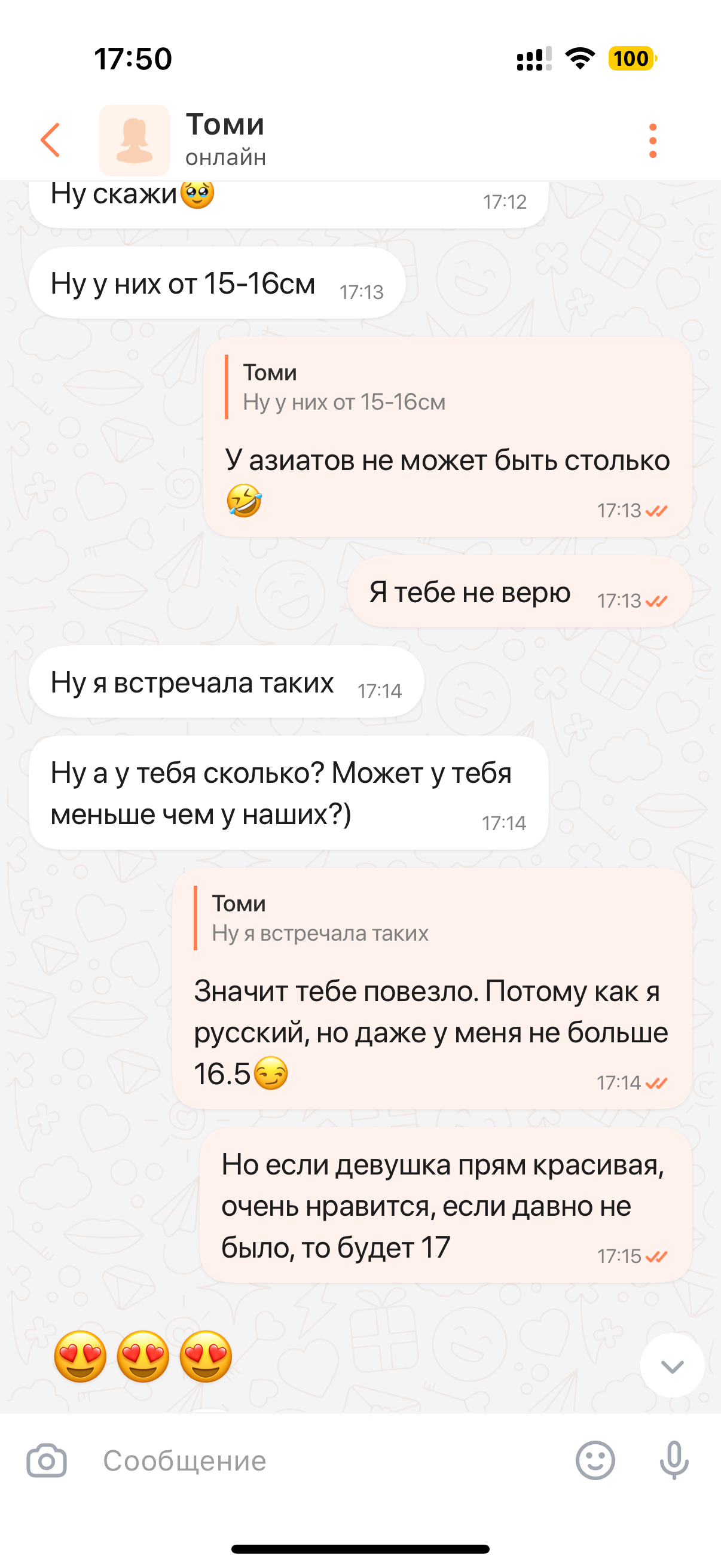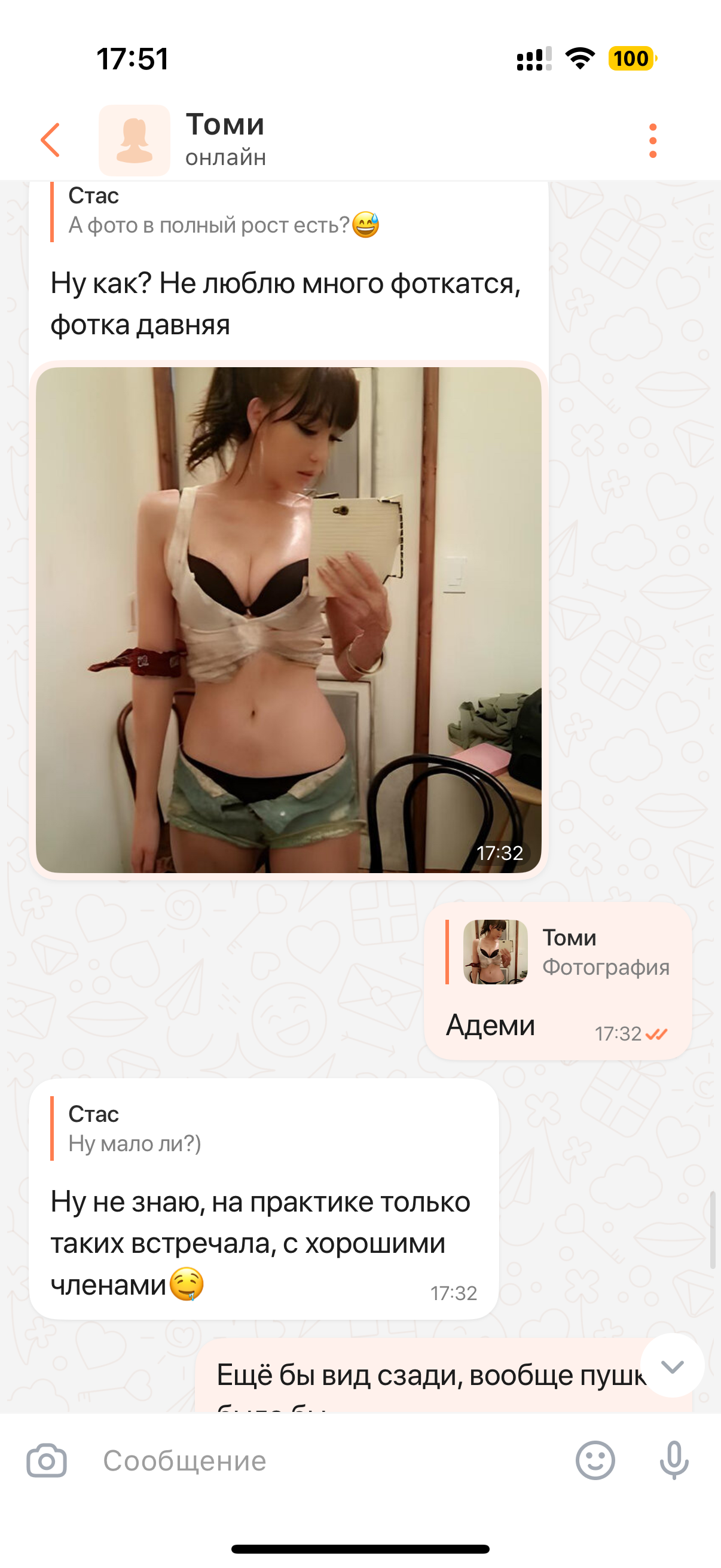 3 минуты диалога с казашкой из Казахстана и уже получил нюдсы. Ебало в представлении не нуждается, все итак ясно😆 Русская бы меня на хуй послала. Анонс, так что, летим в Казахстан за женой? Я уже точно лечу после зимы